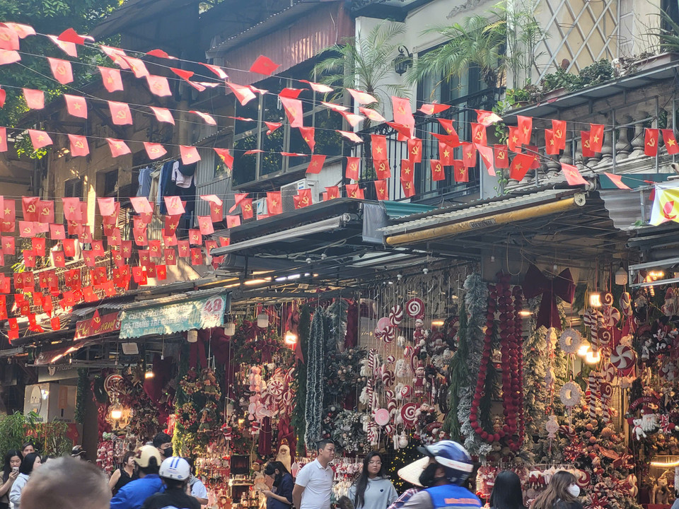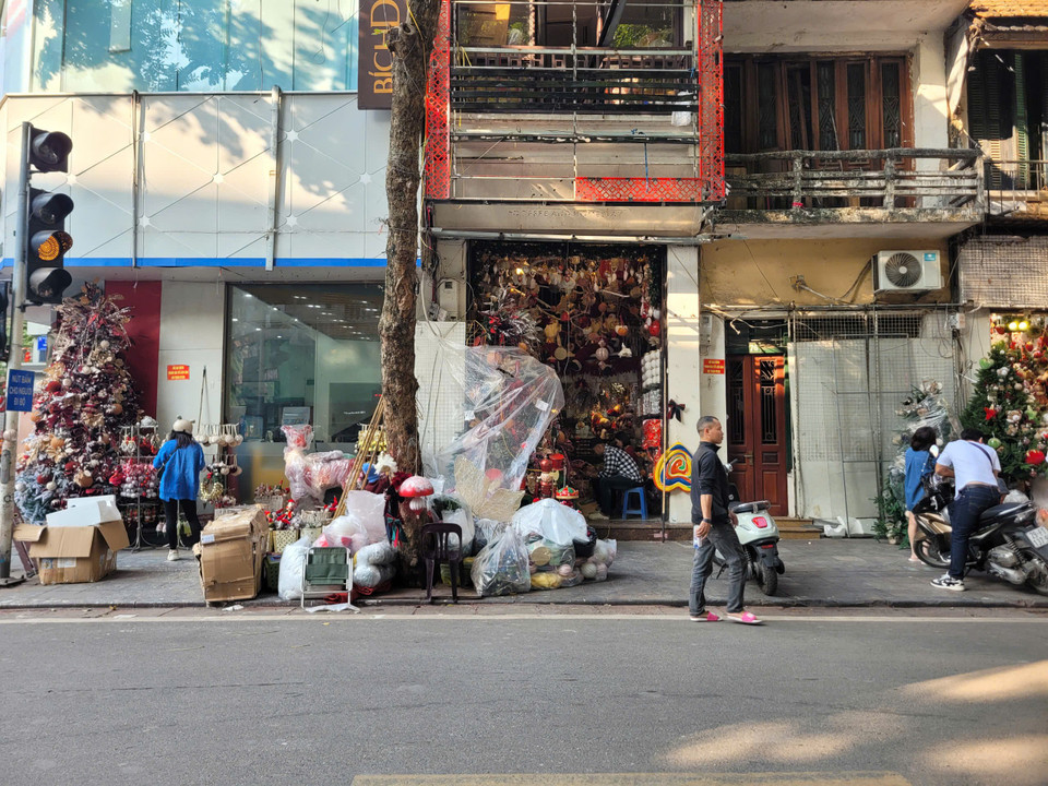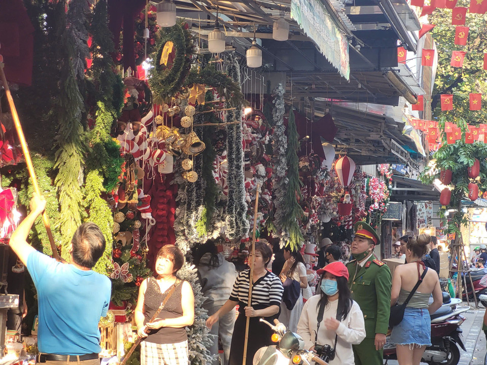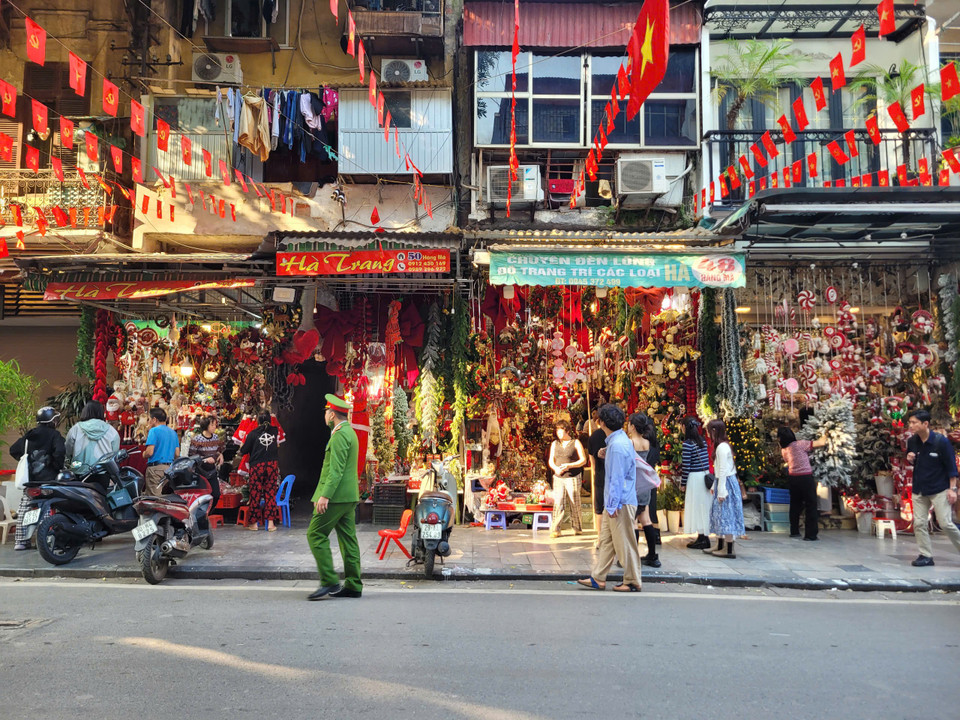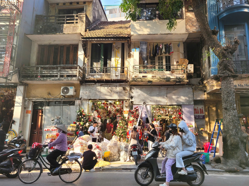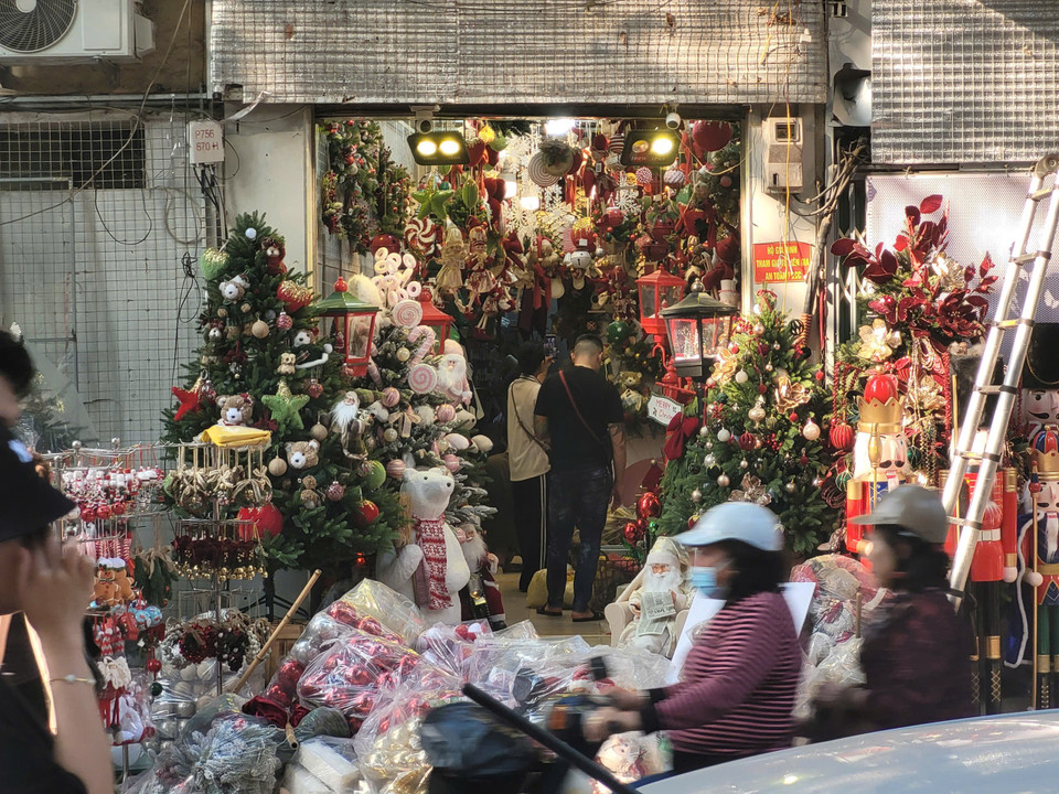 Các hộ gia đình thu gom các đồ đạc và mặt hàng - hiện nay chủ yếu là đồ trang trí đón Giáng sinh - để cất vào trong nhà. (Ảnh: Minh Anh/Vietnam+)