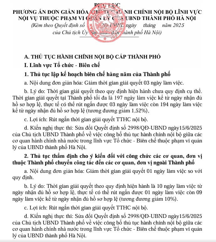 Thủ tục hành chính nội bộ cấp thành phố gồm thủ tục hành chính thuộc các lĩnh vực: Tổ chức - Biên chế (18 thủ tục); Tổ chức hành chính, đơn vị sự nghiệp (2 thủ tục); Lĩnh vực viên chức (1 thủ tục); lĩnh vực Văn thư, lưu trữ (1 thủ tục); lĩnh vực Thi đua - Khen thưởng (15 thủ tục).