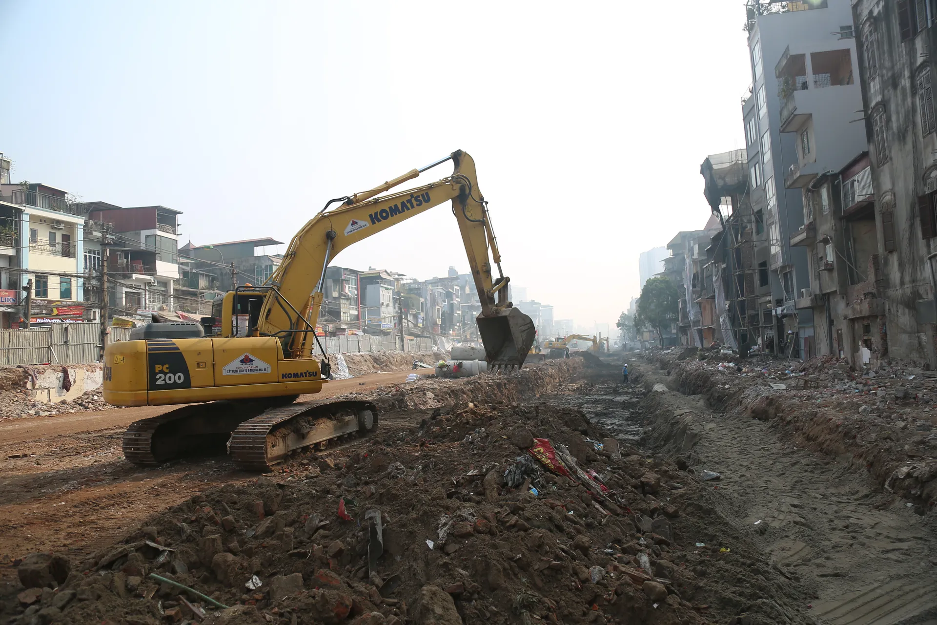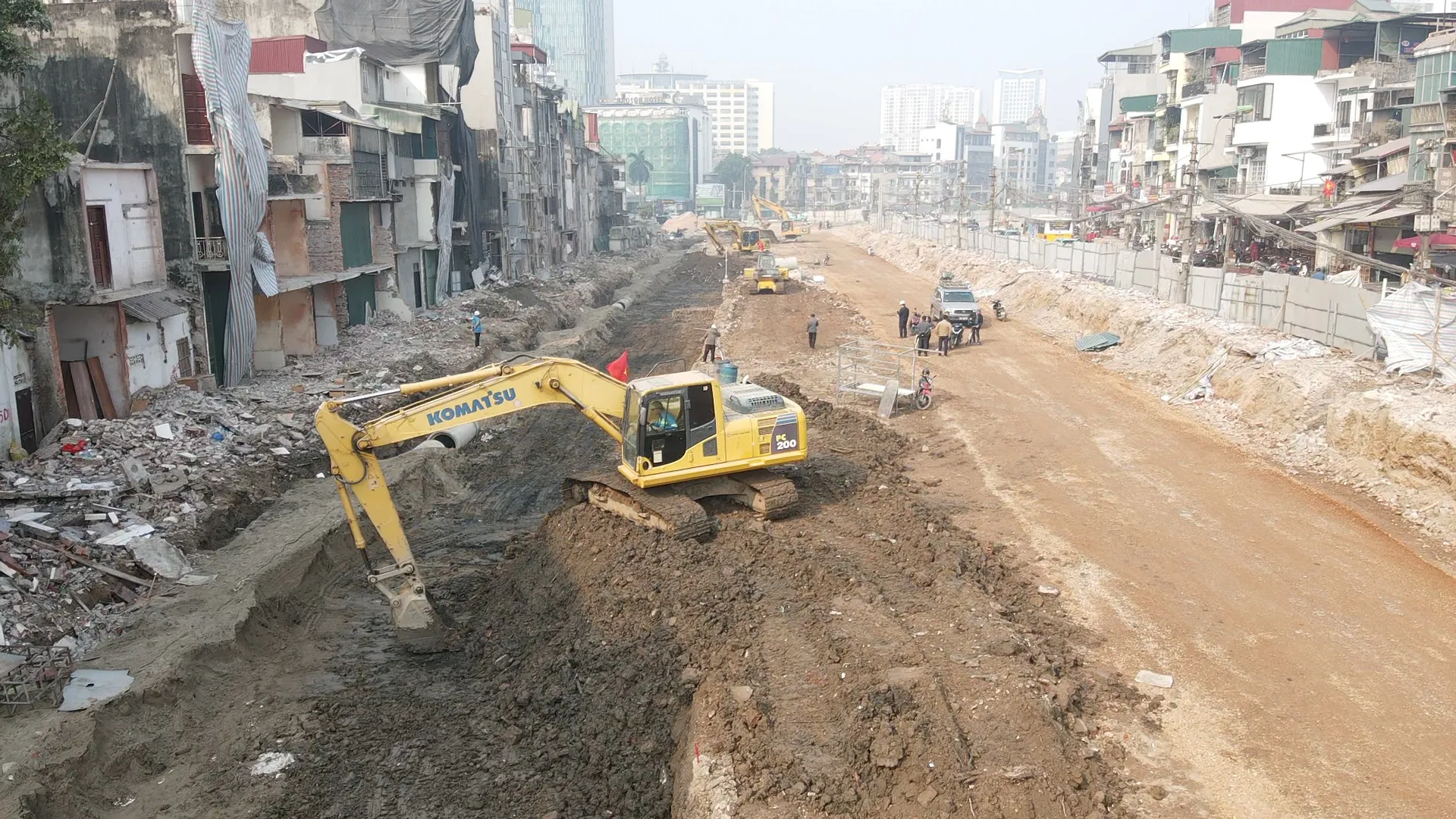 Theo ông Trần Đình Cường, đơn vị yêu cầu nhà thầu huy động đầy đủ nhân sự, thiết bị và vật liệu, tập kết tại công trường; thi công liên tục, kể cả ngày nghỉ, ngày lễ. Các hạng mục hạ tầng kỹ thuật như thoát nước, hào kỹ thuật được triển khai theo hình thức cuốn chiếu, dọn sạch phế thải đến đâu thi công ngay đến đó.