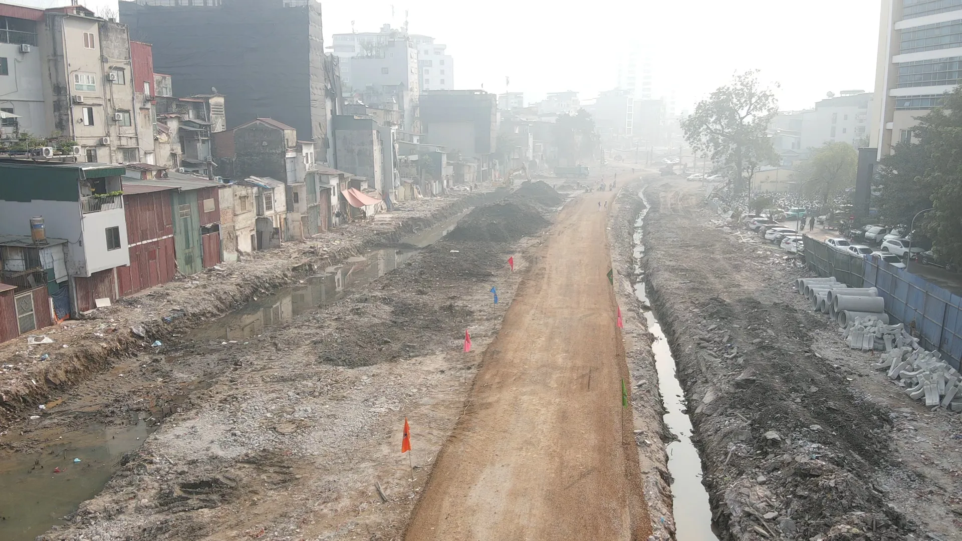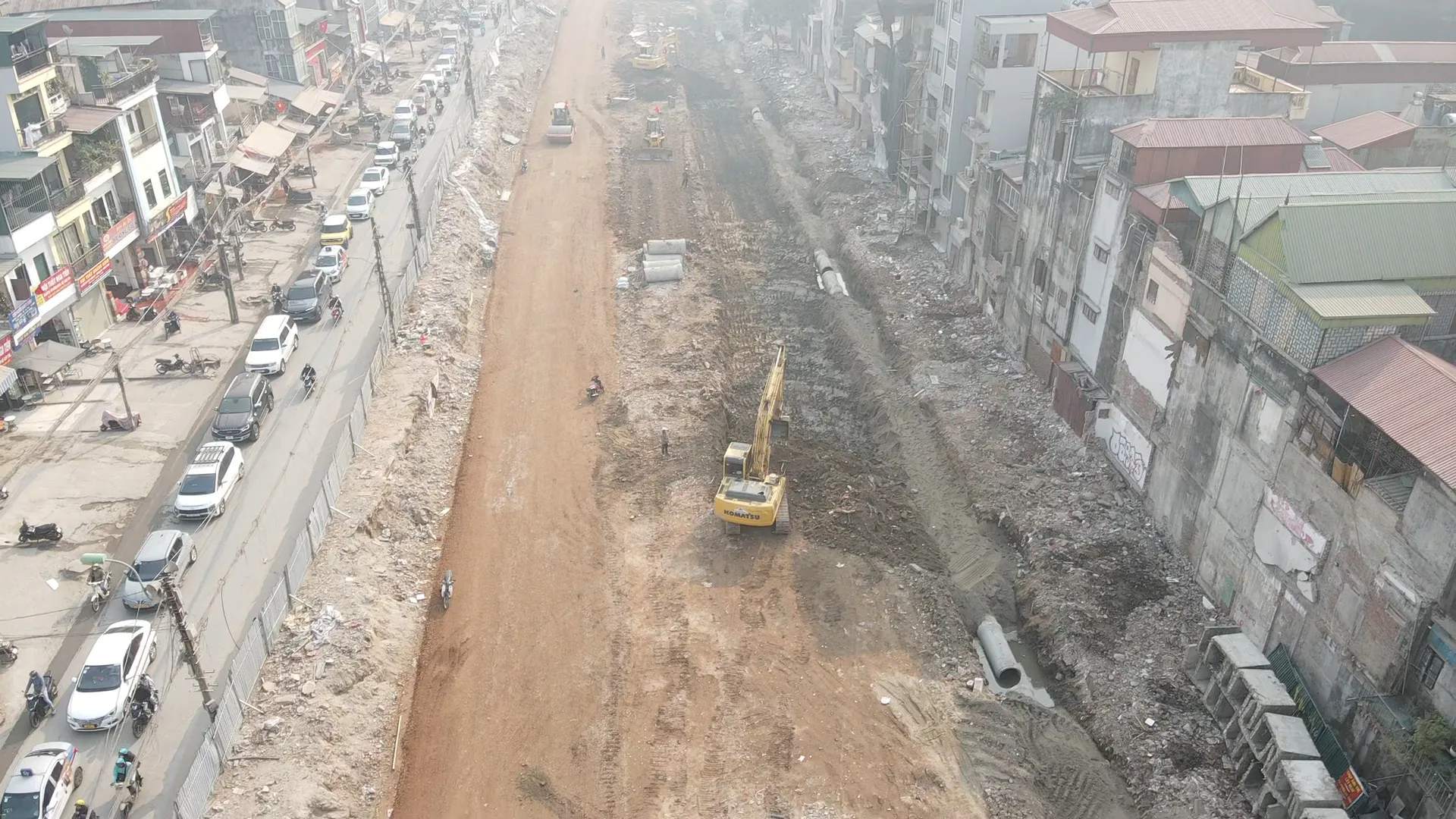 Song song với tuyến đường này, nhà thầu cũng đang tiến hành đồng thời công tác ngầm phía dưới như hào kỹ thuật, cống thoát nước và đang triển khai thi công bó ống, đặt hào kỹ thuật và hệ thống cống thoát nước mưa dọc tuyến.