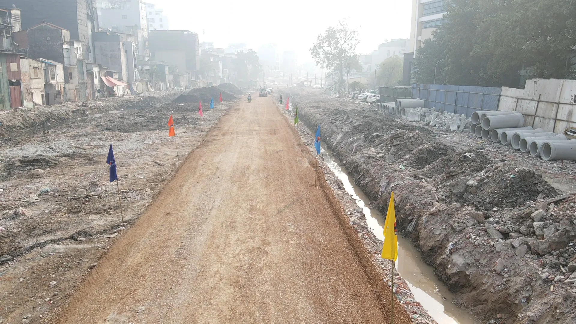 Một con đường tạm xuyên suốt dự án đã được hoàn thiện phục vụ thi công và người dân đi lại.