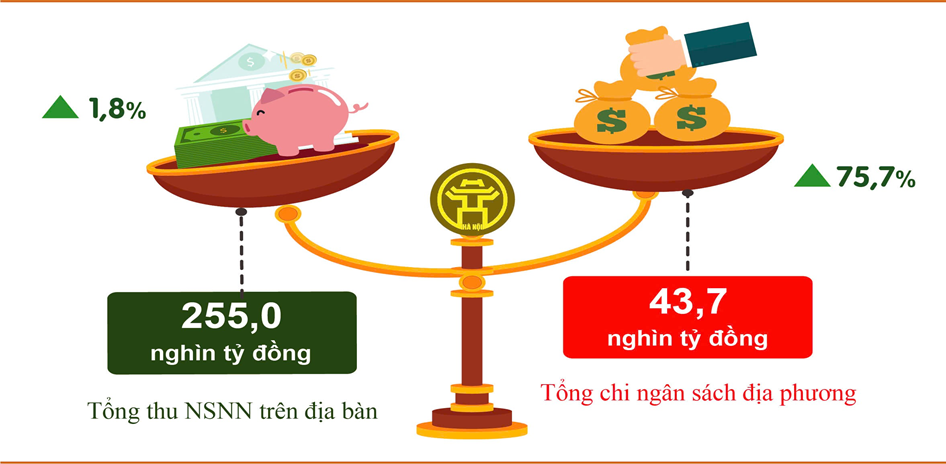 Chi bảo đảm xã hội 2.546 tỷ đồng, đạt 24,0% và gấp 1,9 lần; chi y tế, dân số và gia đình 518 tỷ đồng, đạt 11,9% và bằng 34,0%; chi bảo vệ môi trường 847 tỷ đồng, đạt 21,9% và tăng 5,9%; chi an ninh, trật tự, an toàn xã hội 850 tỷ đồng, đạt 37,6% và tăng 89,6%.