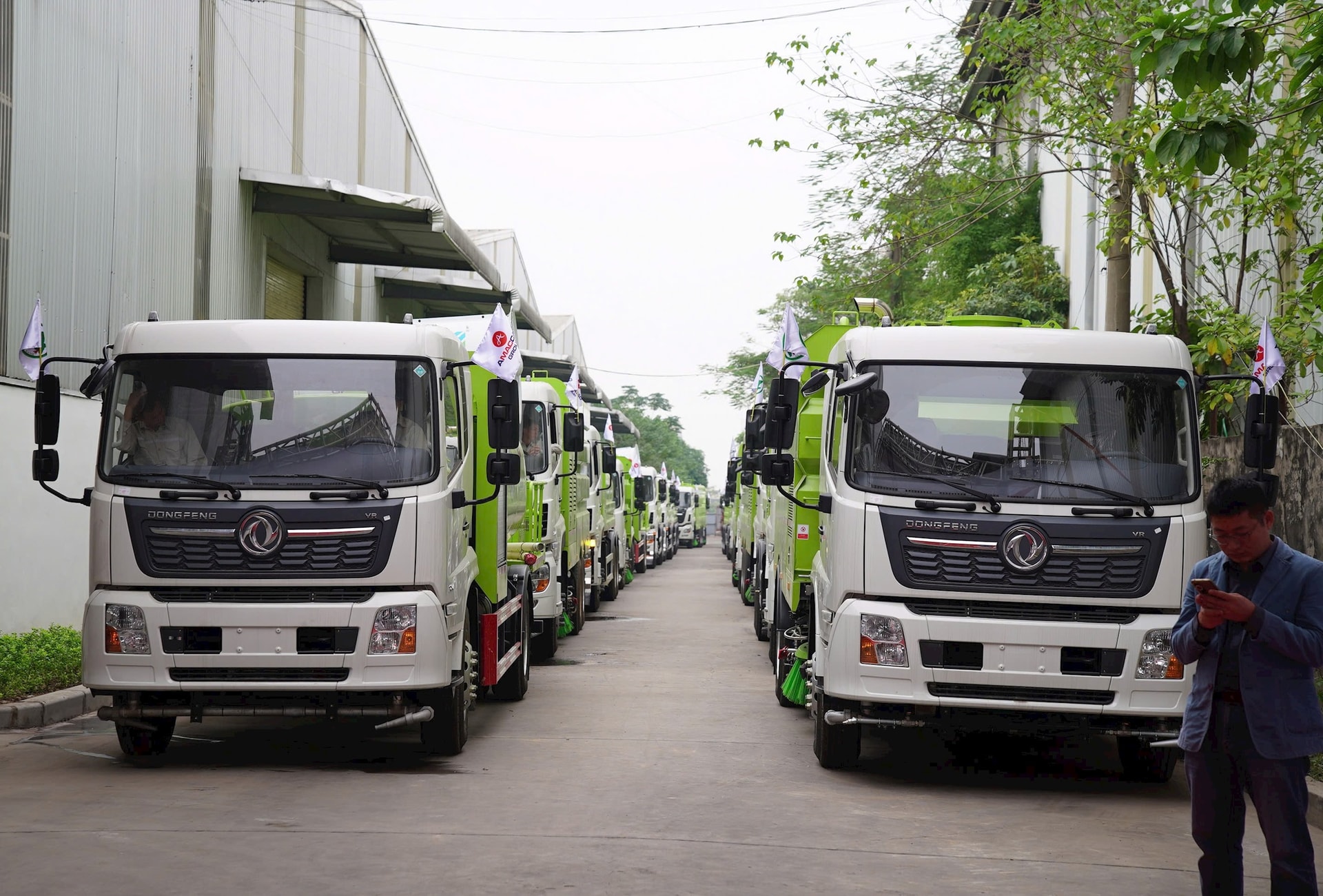 100 phương tiện vệ sinh môi trường hiện đại sẽ được Tập đoàn AMACCAO đưa vào vận hành trong thời gian tới. Ảnh: Hoàng Sơn
