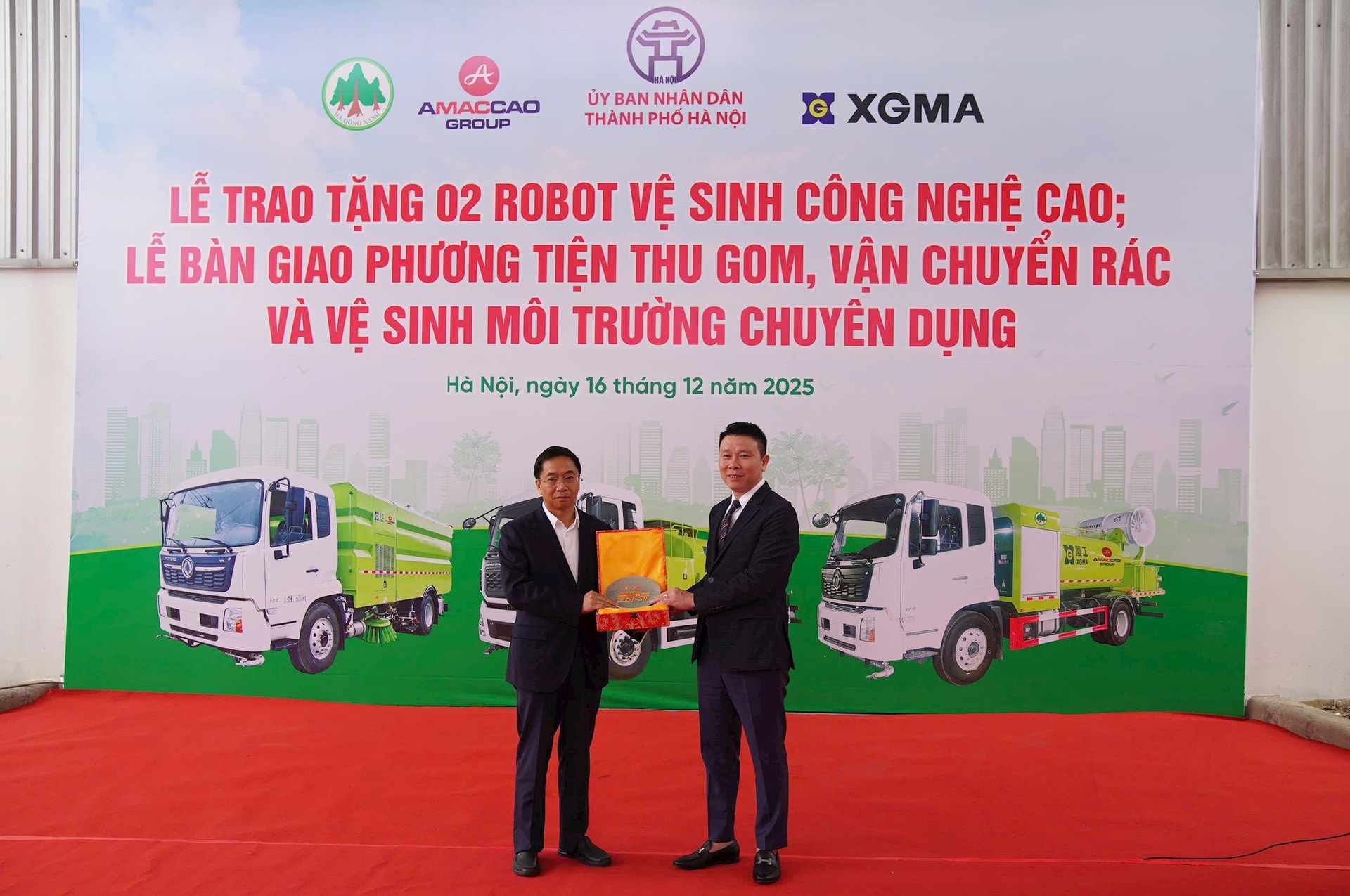 Điểm nhấn đặc biệt của sự kiện là việc Tập đoàn AMACCAO trao tặng thành phố Hà Nội 2 robot vệ sinh công nghệ cao. Đây là các thiết bị vệ sinh thế hệ mới, có khả năng tự động vận hành, tích hợp công nghệ cảm biến và điều khiển thông minh, giúp làm sạch các khu vực công cộng như quảng trường, công viên, tuyến phố đi bộ… Việc đưa robot vệ sinh vào sử dụng được xem là bước thử nghiệm quan trọng, mở ra hướng tiếp cận mới trong quản lý vệ sinh môi trường đô thị, phù hợp với định hướng xây dựng đô thị thông minh của Thủ đô.