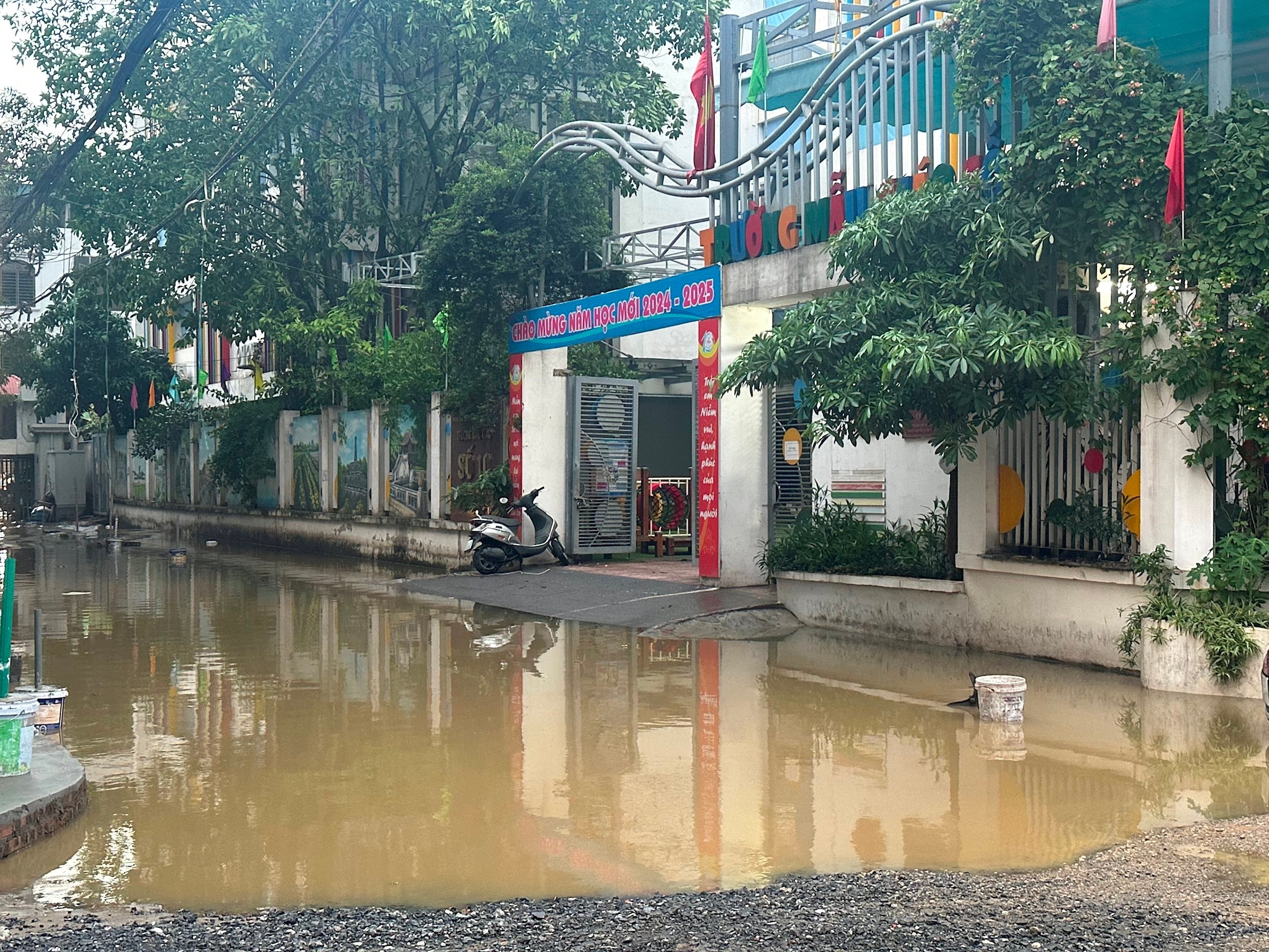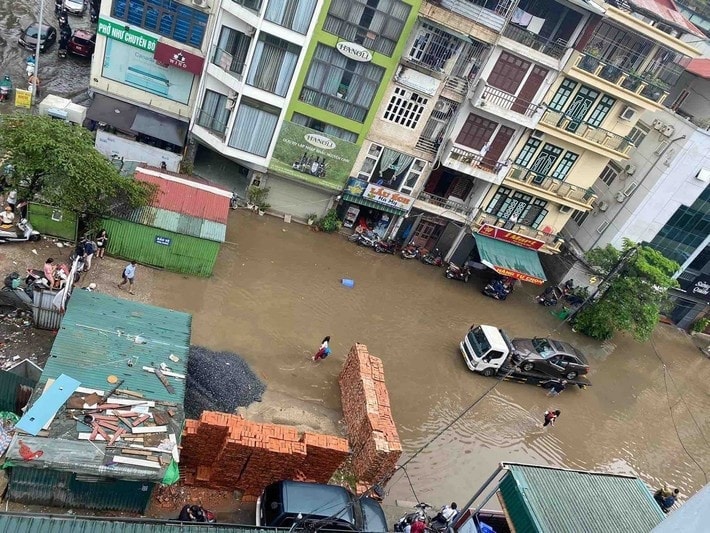 Khu vực cuối ngõ 42 Giang Văn Minh (phường Ba Đình) ngập nặng nhất do hậu quả của cống hóa dang dở, không kịp tiêu thoát nước