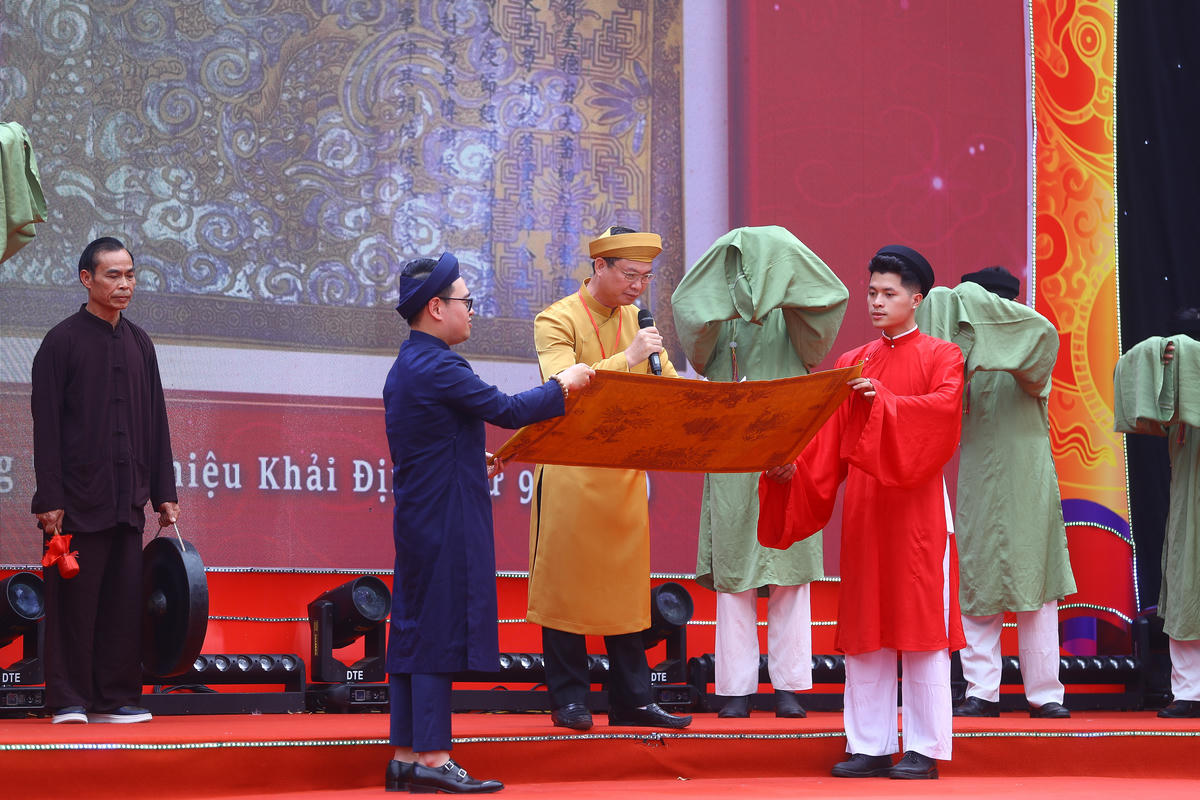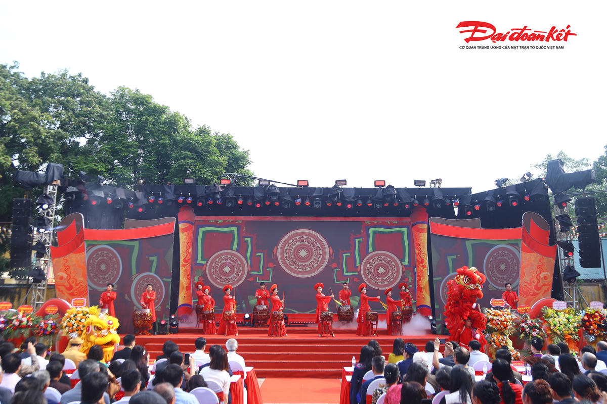 Tiết mục nghệ thuật tiếng trống thiêng ‘Vọng ngàn đời’ tại lễ kỷ niệm 100 năm xây dựng đền đức Trần triều.