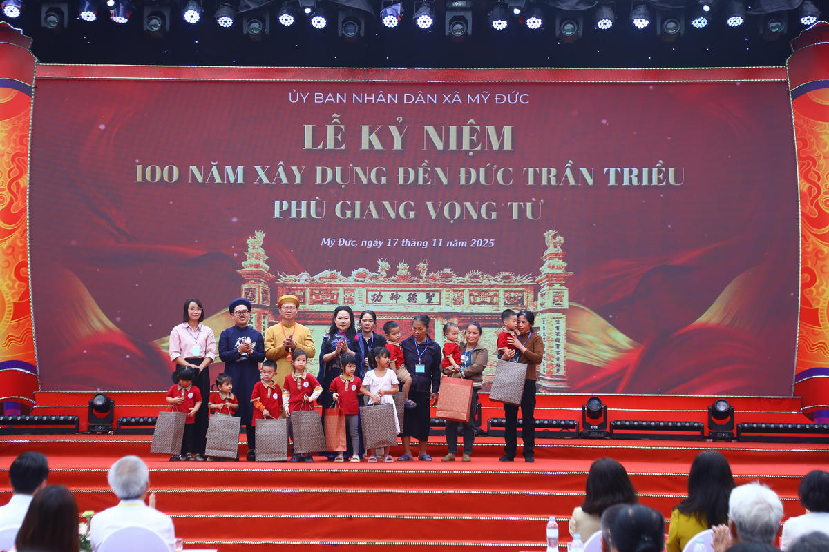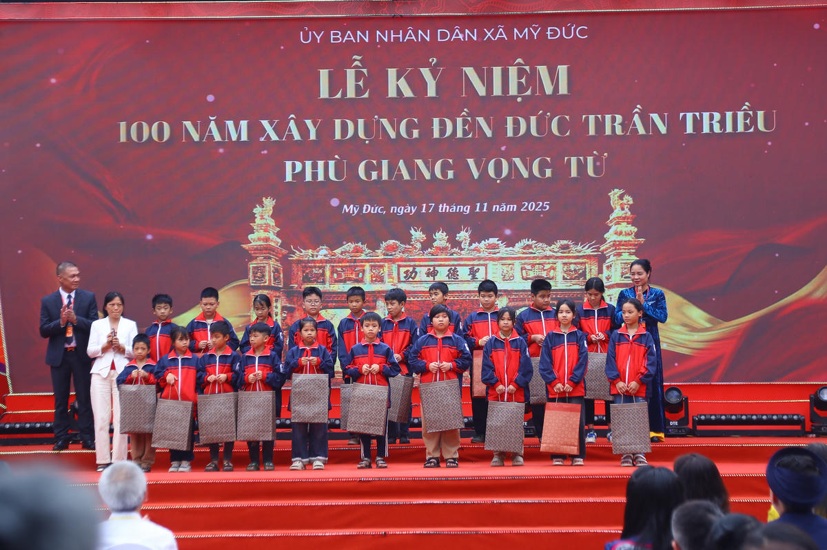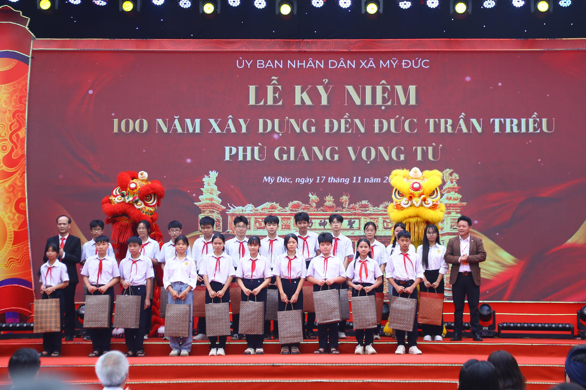 Trong khuôn khổ lễ kỷ niệm, xã Mỹ Đức và đại diện hậu duệ Thánh Tổ Trần Quốc Tuấn đã trao suất quà cho học sinh trên địa bàn xã.
