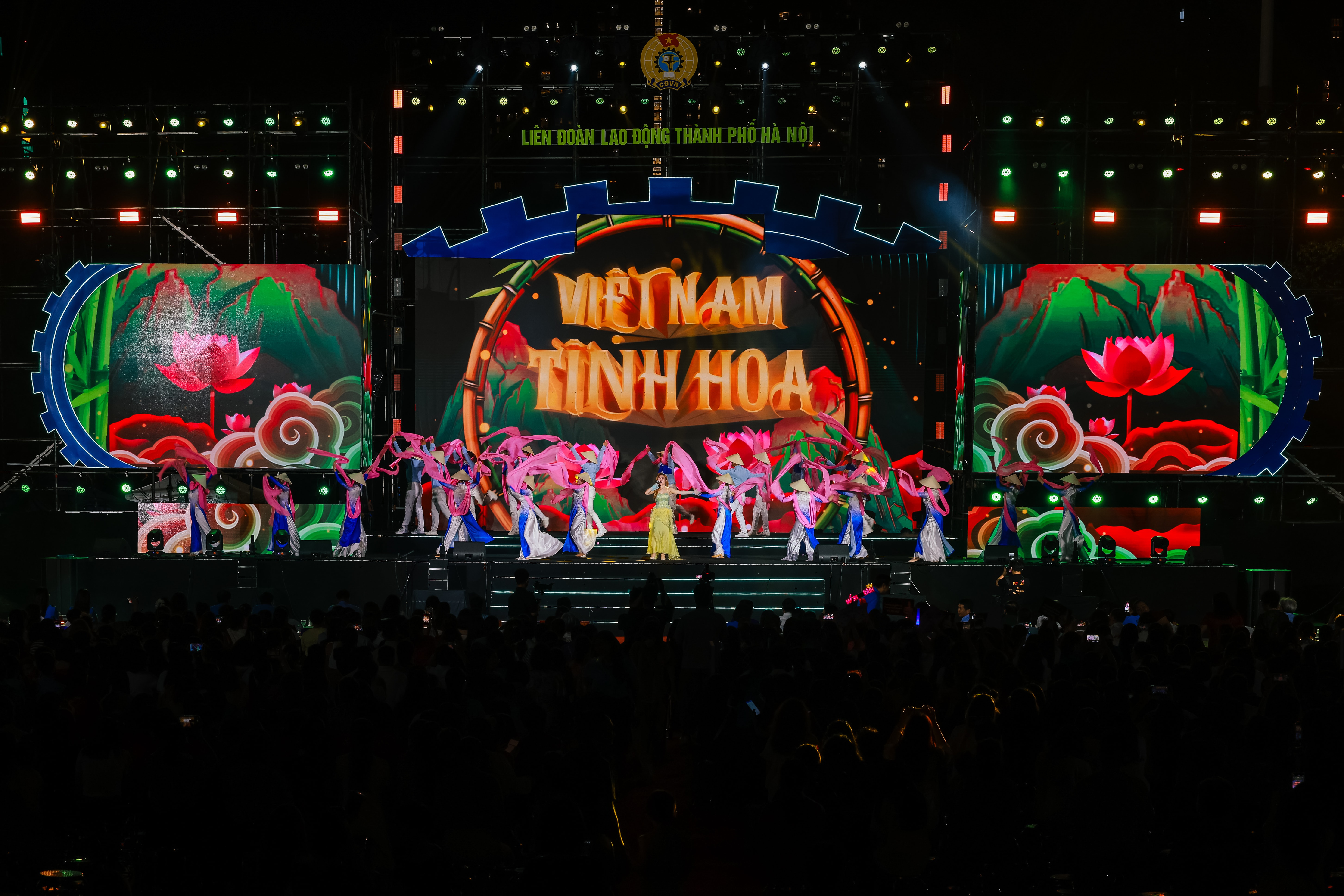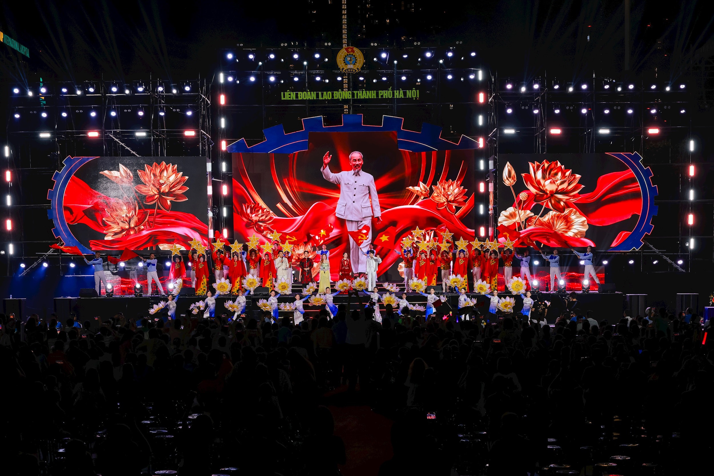 Tiếp đó, chương trình nghệ thuật “Vang mãi bản trường ca Lao động” được dàn dựng công phu, kéo dài đến 21h30, với nhiều tiết mục đặc sắc ca ngợi giai cấp công nhân và người lao động.