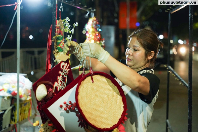 Không chỉ hàng thực phẩm, các ki-ốt bán đồ trang trí trên phố Vũ Tông Phan cũng chung cảnh ngộ. Chị Thủy (47 tuổi) cho biết dù đã dọn hàng từ sáng sớm nhưng sức mua năm nay rất chậm do người dân thắt chặt chi tiêu. Những món đồ trước bán 100.000 đồng nay chỉ còn 70.000 đồng mà vẫn kén khách.