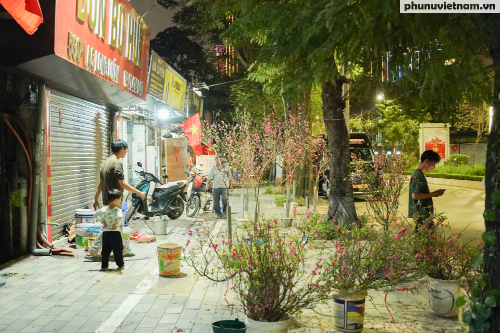 Các tiểu thương tại khu vực Lạc Long Quân cho biết đang hối hả dọn hàng. Dù đào vẫn còn nhiều trên phố nhưng họ chấp nhận chở về hoặc bỏ lại để kịp về đoàn tụ với gia đình trước thời khắc chuyển giao sang năm mới Bính Ngọ.