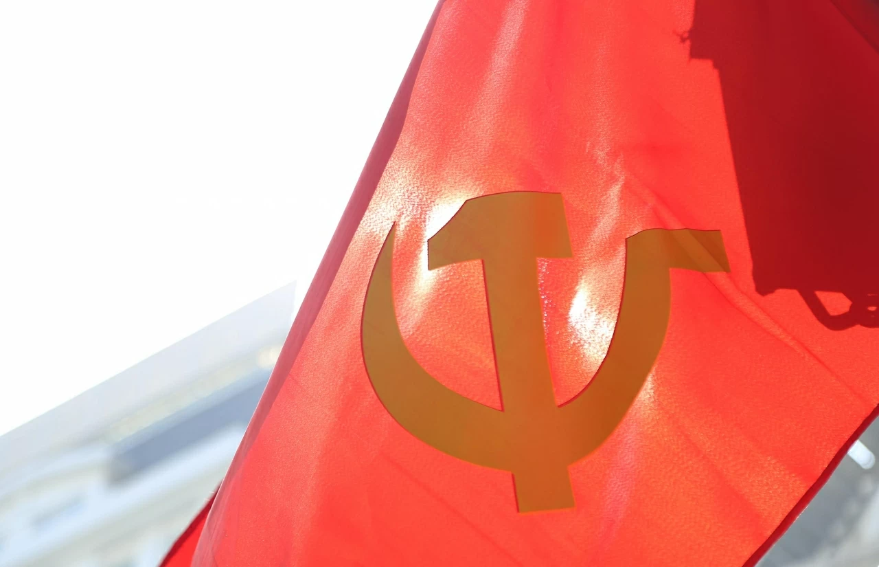 Mô hình chào mừng Đại hội XIV được đặt tại tượng đài Lenin, bên đường Điện Biên Phủ. (Ảnh: Thành Long)