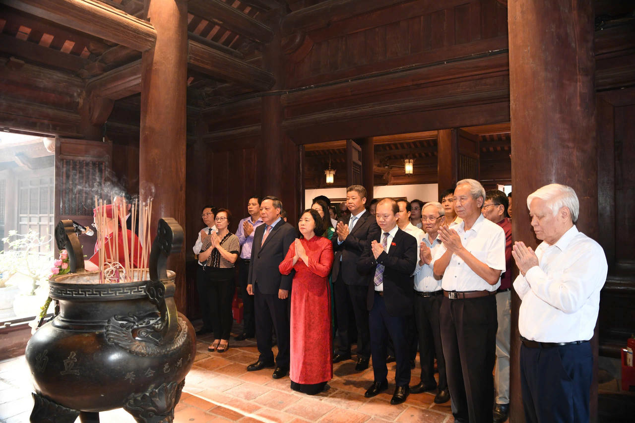 Các đại biểu dâng hương tại Di tích Văn Miếu - Quốc Tử Giám. Ảnh: Phạm Sỹ.