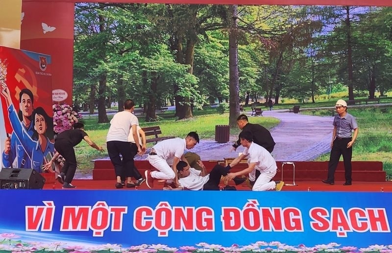 Một tiểu phẩm truyền thông kêu gọi giới trẻ không thử sử dụng ma túy dù chỉ một lần. Ảnh: Vũ Minh
