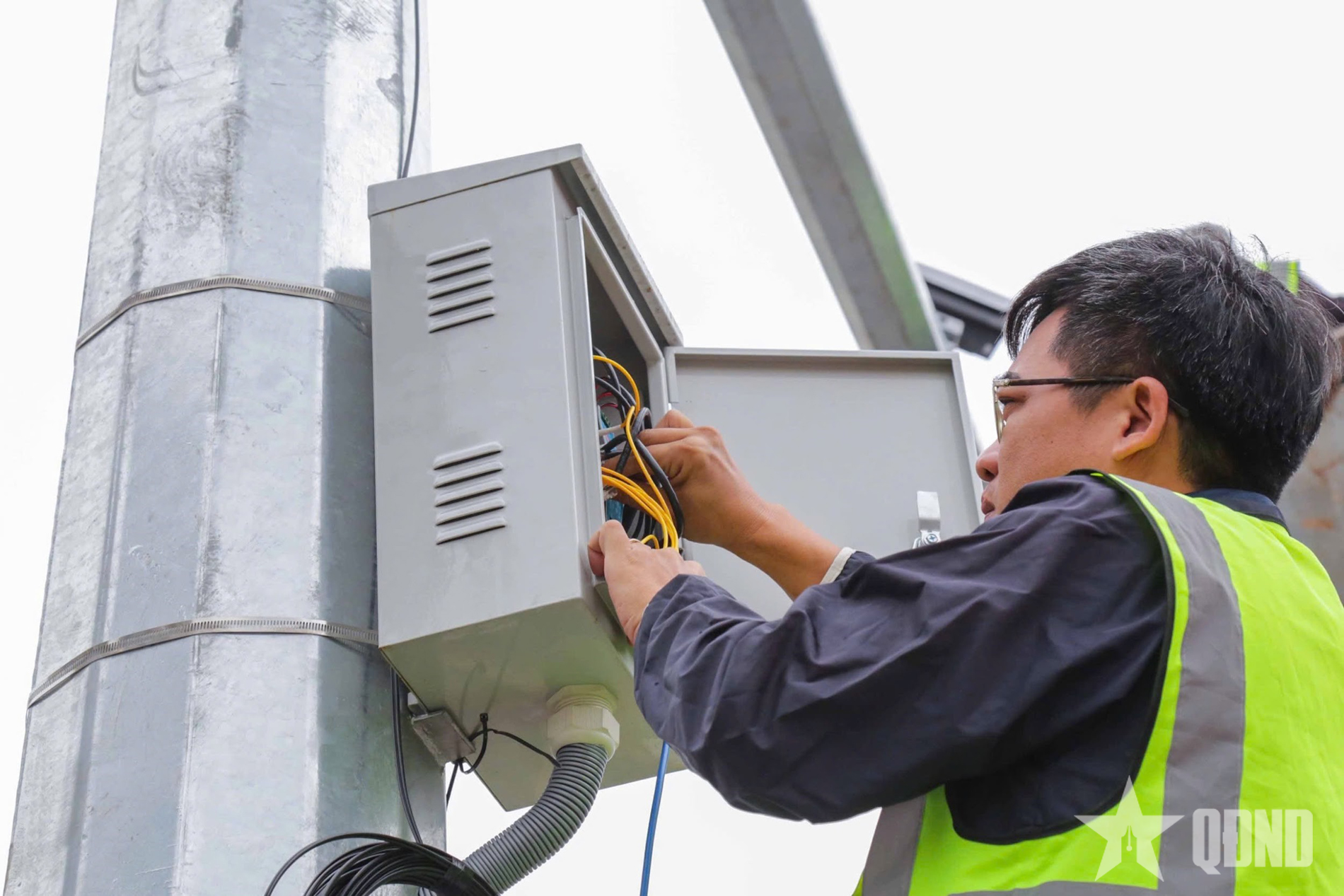 Đội ngũ kỹ thuật lắp đặt đường truyền tín hiệu.