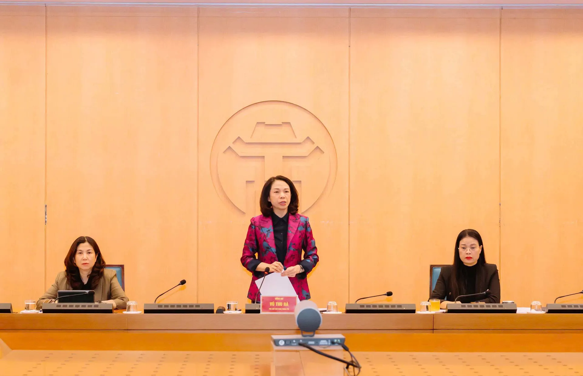 Phó Chủ tịch UBND TP Hà Nội Vũ Thu Hà chủ trì cuộc họp.