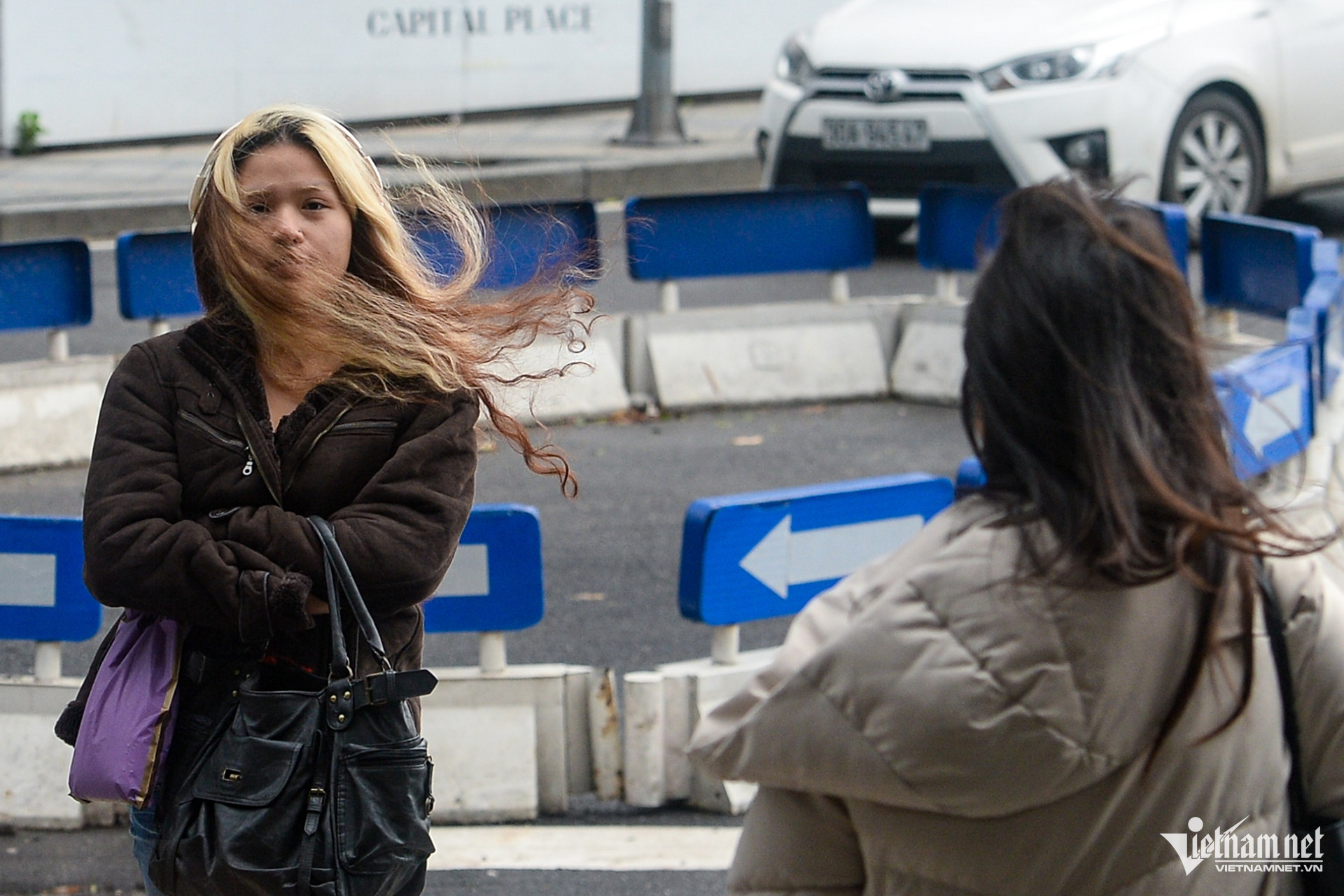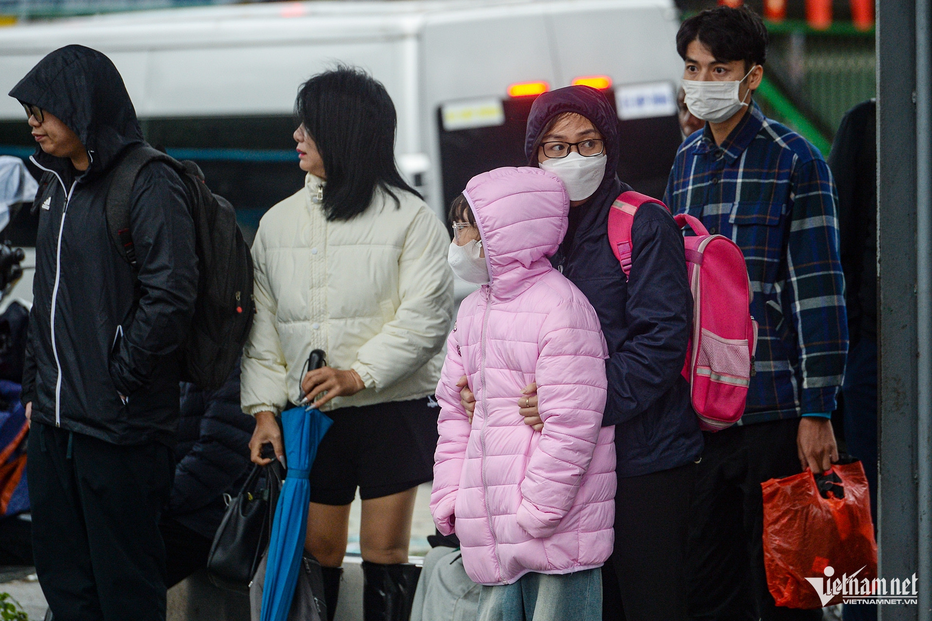 Trên vỉa hè các tuyến phố, gió lùa khá lạnh. Hành khách đứng chờ xe buýt co ro dù đã mặc áo khoác dày, khẩu trang, khăn quàng cổ.