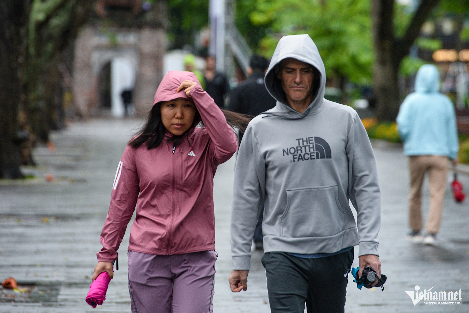 Sáng 19/11, Hà Nội tuy không mưa nhưng nhiệt độ giảm sâu, khoảng 12 độ C, người đi đường phải mặc quần áo ấm.