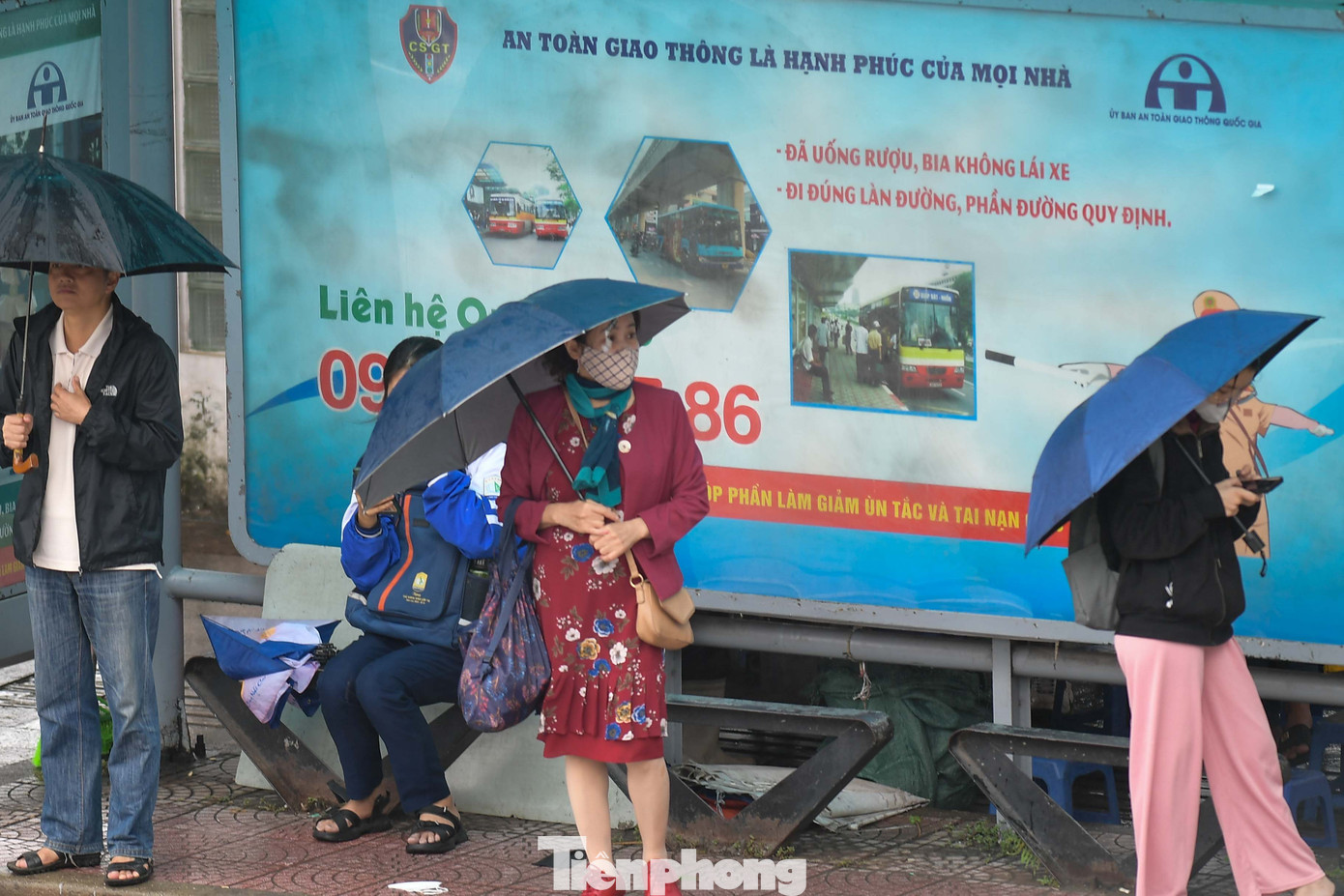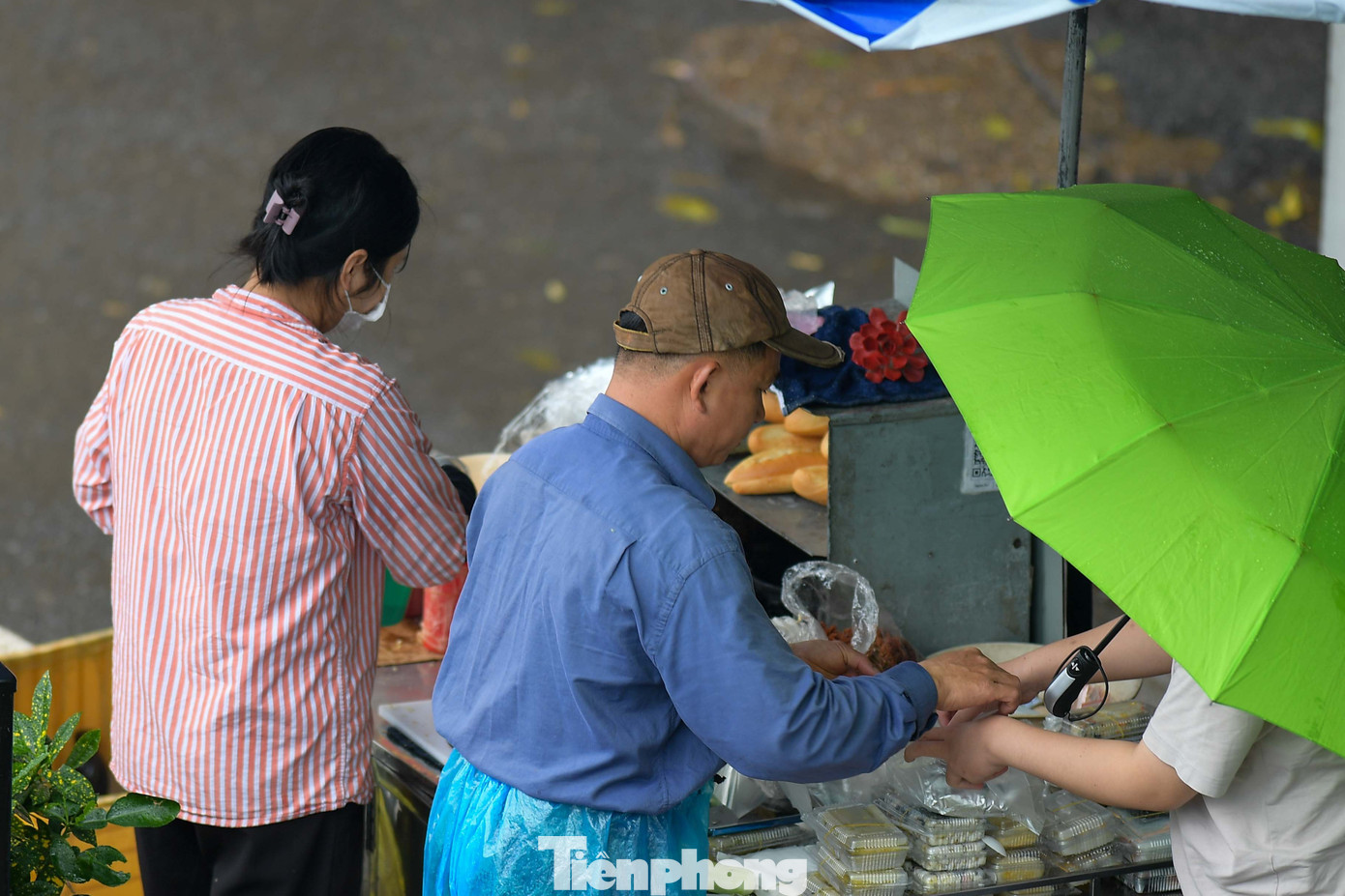 Mưa rả rích từ đêm khiến sáng Hà Nội như chậm lại. Thế nhưng, giữa những con phố ướt đẫm nước, nhịp sống của người lao động vẫn tiếp tục: từ người bán hàng ăn sáng, bảo vệ trực đêm, đến shipper, sinh viên, người chờ xe buýt…