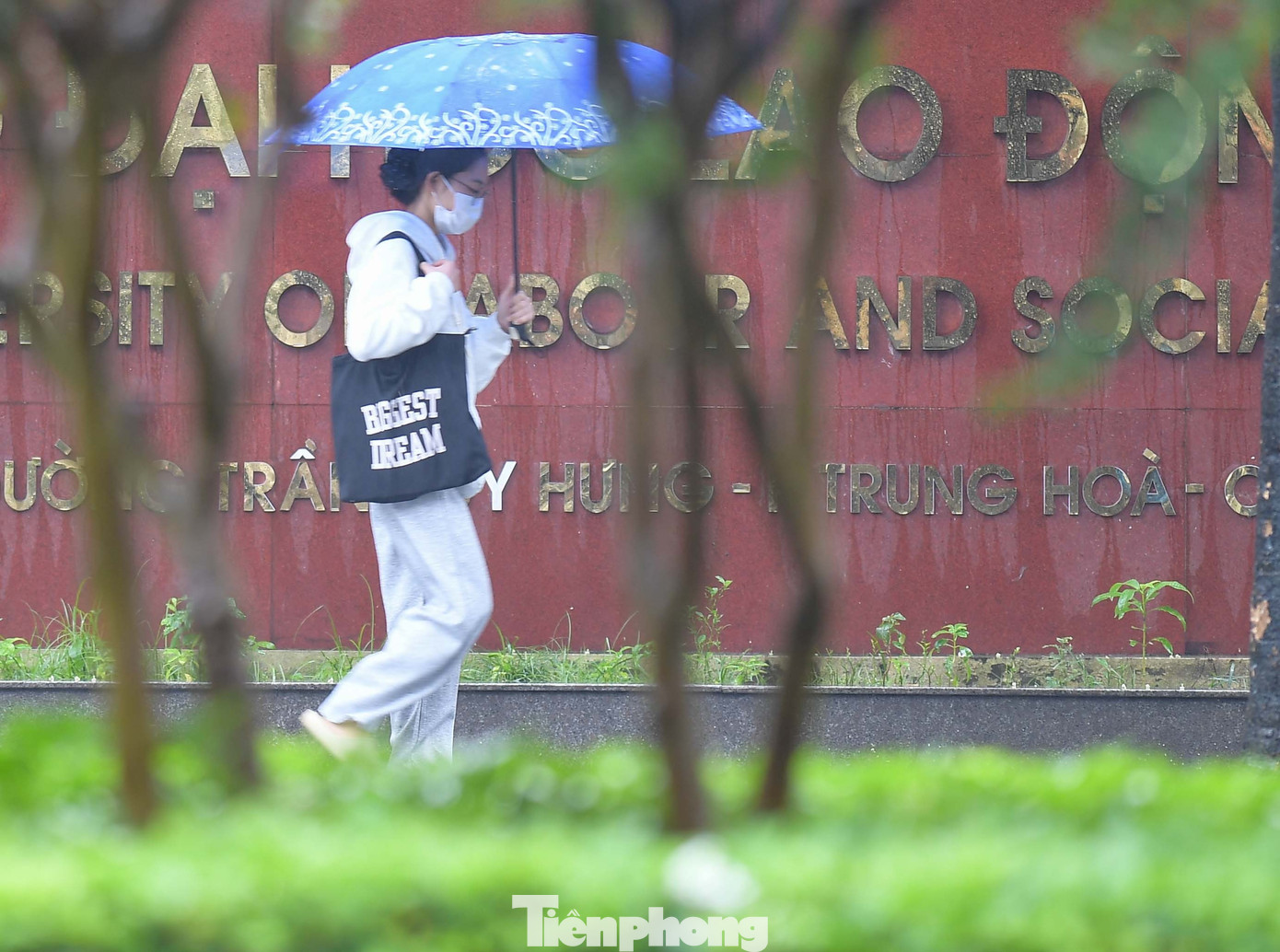 Mai, sinh viên năm hai, kể: “Nhà mình ở Mỹ Đình, sáng nào cũng phải bắt xe bus đi học. Mưa thì trễ chút, nhưng đến lớp rồi là quên ngay. Hôm nào bạn nào quên áo mưa là cả nhóm chia nhau che”.