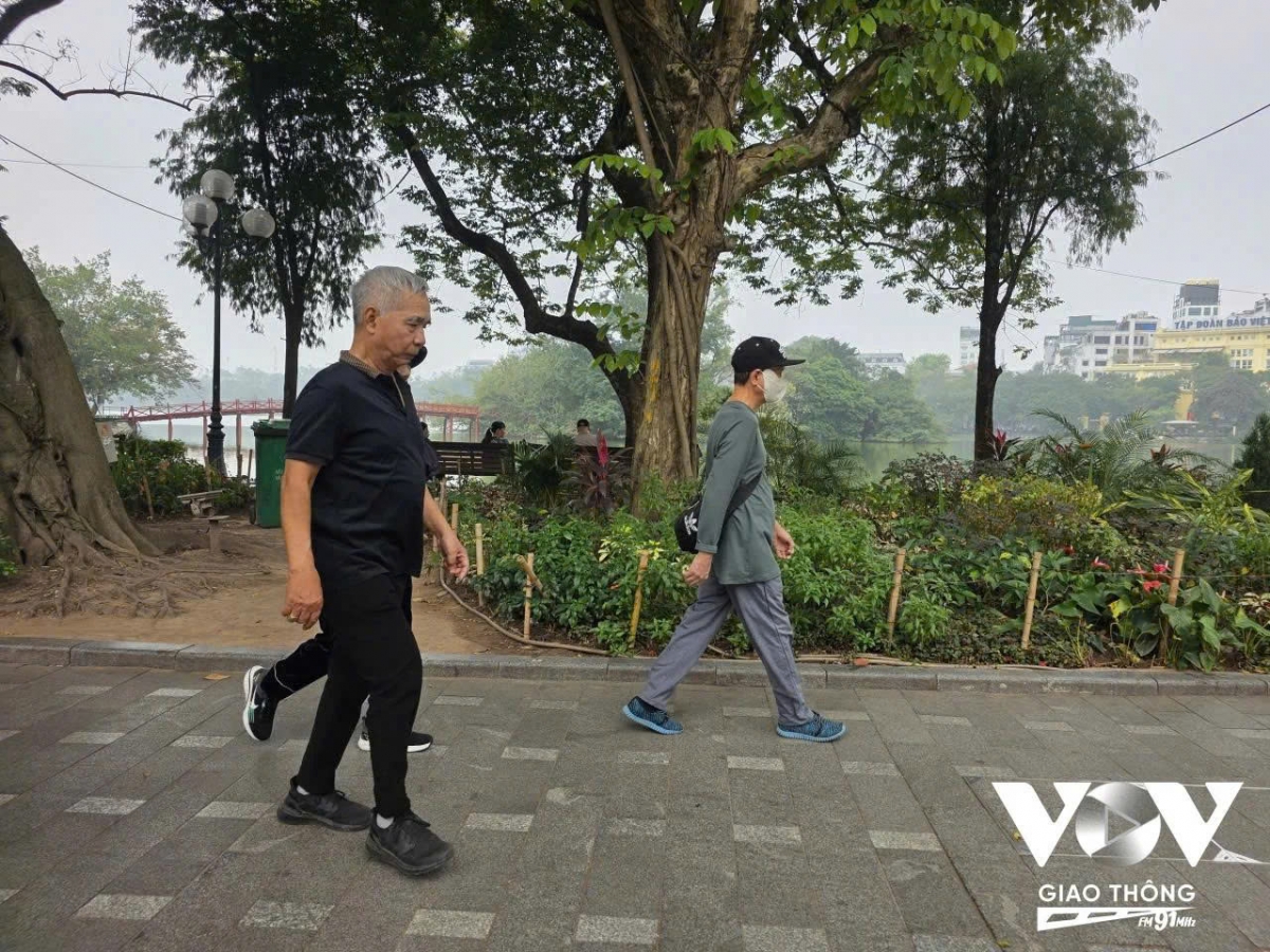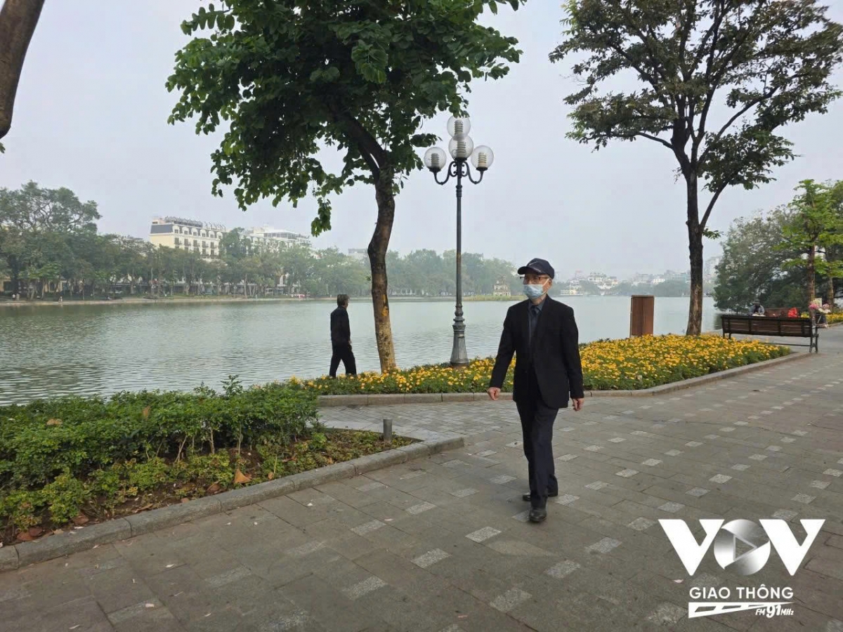 Ông Hà Đức Huynh, 80 tuổi, người dân đi tập thể dục tại bờ hồ cho biết: "Hiện nay, Hà Nội rất ô nhiễm, đường xá bụi lắm, xe cộ đi ầm ầm thế này rất bụi. Nói chung là thời tiết là xấu lắm ấy, nó cứ nhòa nhòa không nhìn rõ. Tôi đi bình thường như này thì cũng cảm thấy là khó chịu hơn mọi hôm. Để phòng ngừa tôi đi thể dục muộn hơn mọi ngày và luôn đeo khẩu trang".