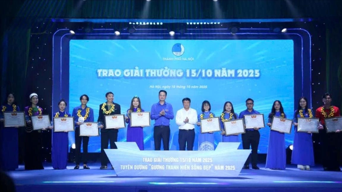 Tại chương trình, Ủy ban Hội Liên hiệp thanh niên Việt Nam thành phố Hà Nội trao giải thưởng “15 tháng 10” cho 13 gương cán bộ Hội có nhiều thành tích tiêu biểu trong công tác Hội và phong trào thanh niên năm 2025; trao giải thưởng cho 12 gương “Thanh niên sống đẹp” năm 2025.