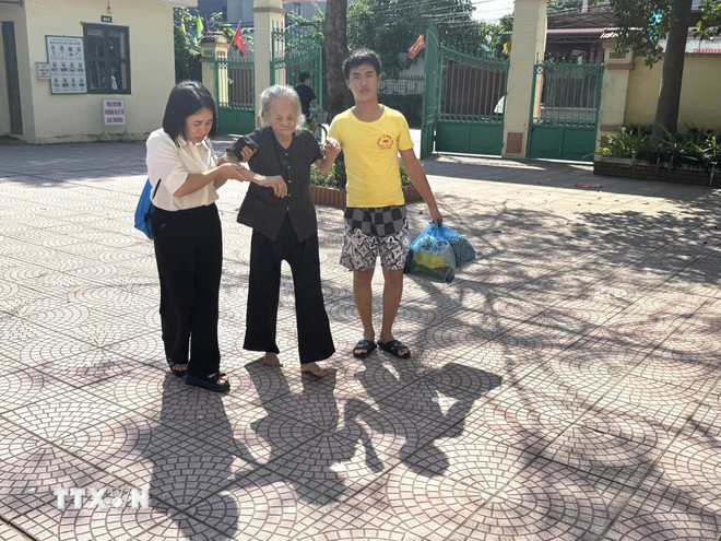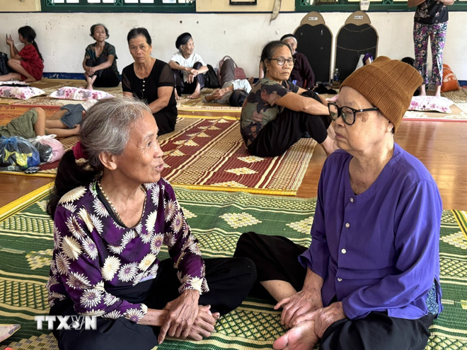 Người dân được chính quyền địa phương sơ tán đến nơi an toàn tại trường mầm non Trung Giã. (Ảnh: Quốc Lũy/TTXVN)