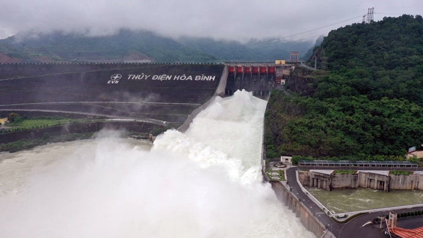 Cục Quản lý đê điều và Phòng, chống thiên tai cho biết, mực nước thượng lưu hồ thủy điện Hòa Bình ở cao trình 115,57m, mực nước hạ lưu 12,67m; trong khi đó, lưu lượng về hồ 6.183m³/s, tổng lưu lượng về hạ du 2.228m³/s. Thực hiện quy trình vận hành liên hồ chứa trên lưu vực sông Hồng, Bộ trưởng Bộ Nông nghiệp và Môi trường đã lệnh Giám đốc Công ty Thủy điện Hòa Bình mở 1 cửa xả đáy vào hồi 18h và mở tiếp 1 cửa xả đáy vào hồi 24h ngày 3-10.