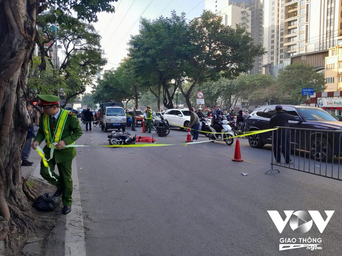 Hiện trường vụ tai nạn xảy ra vào sáng nay 26/11 trước số nhà 581 phố Kim Ngưu