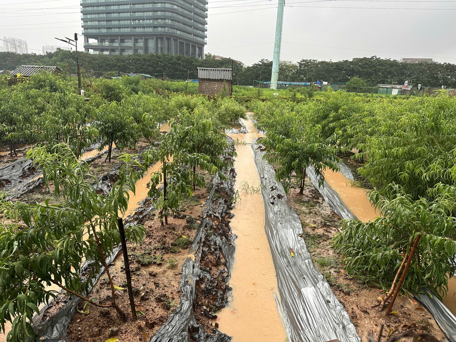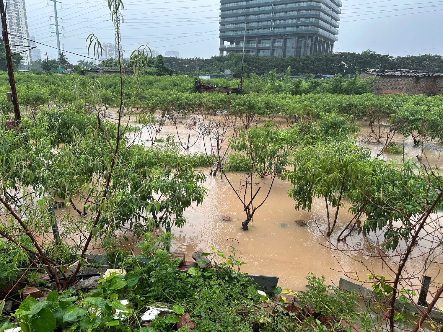 Nhiều gốc đào chìm sâu trong nước sau đợt mưa rạng sáng 7/10