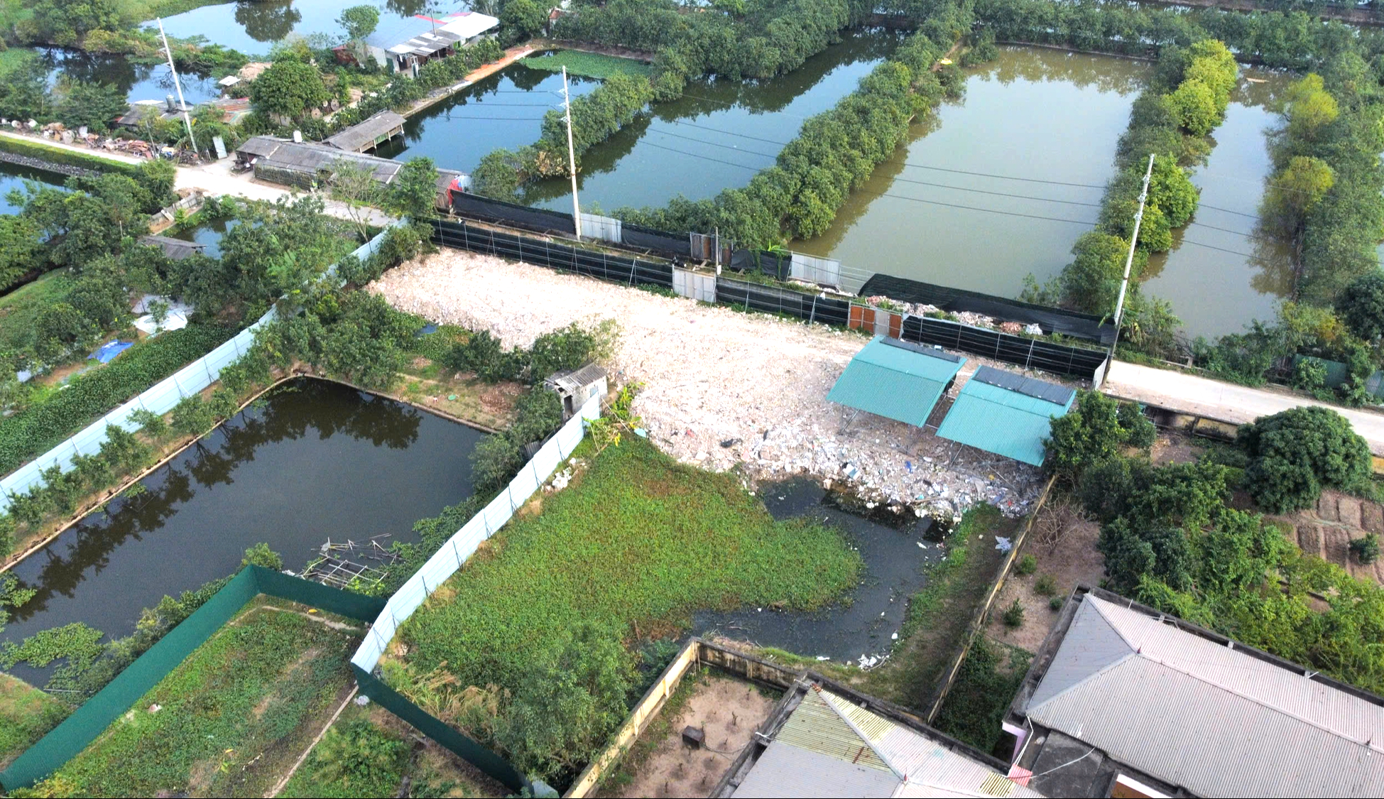 Ghi nhận thực tế cho thấy, hàng nghìn m2 đất trên thực tế là ao, hồ phía sau trường mầm non có hiện tượng san lấp như người dân phản ánh. Công trình được quây tôn, chạy dài hàng trăm mét theo đường dân sinh, có 2 cổng ra vào. Bên trong, có 2 nhà tạm bằng khung thép, lợp mái tôn xanh.
