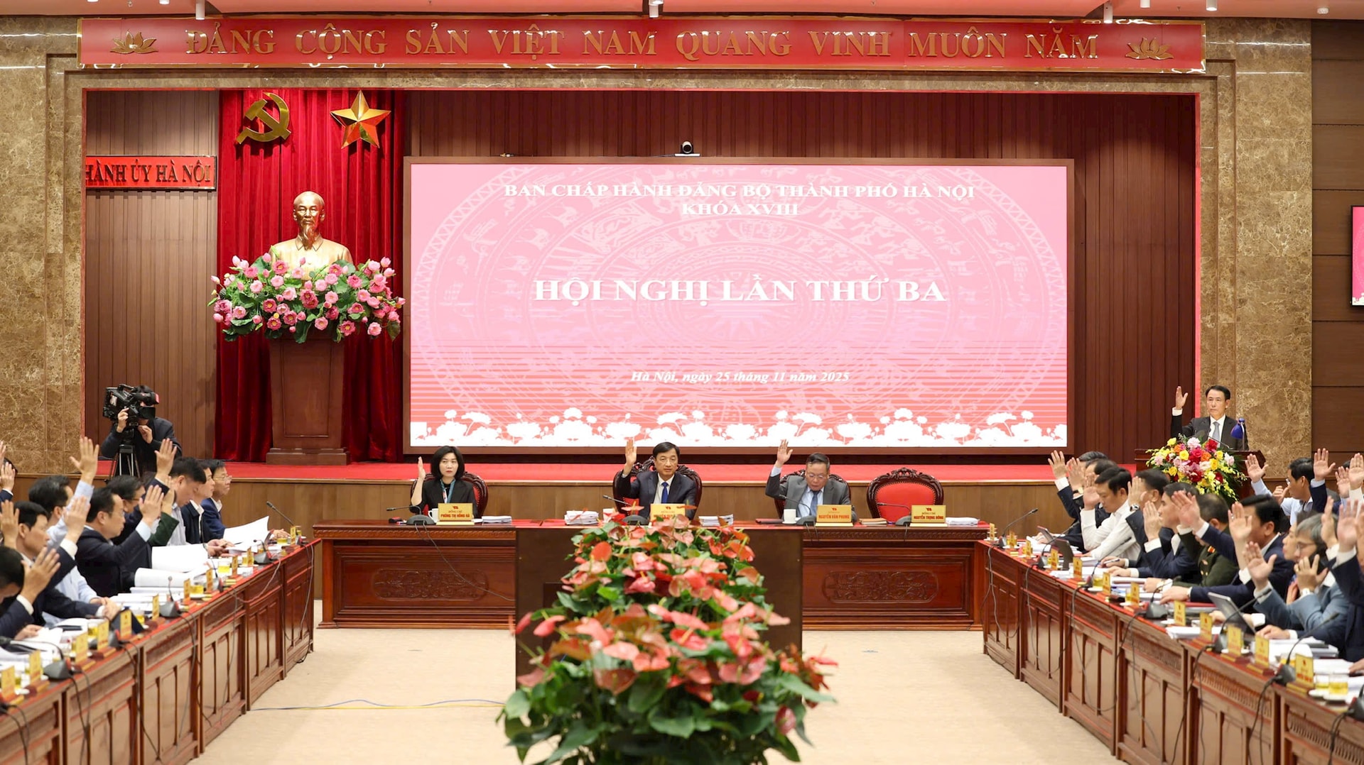 Hội nghị lần thứ ba Ban Chấp hành Đảng bộ thành phố Hà Nội khóa XVIII. Ảnh: Viết Thành