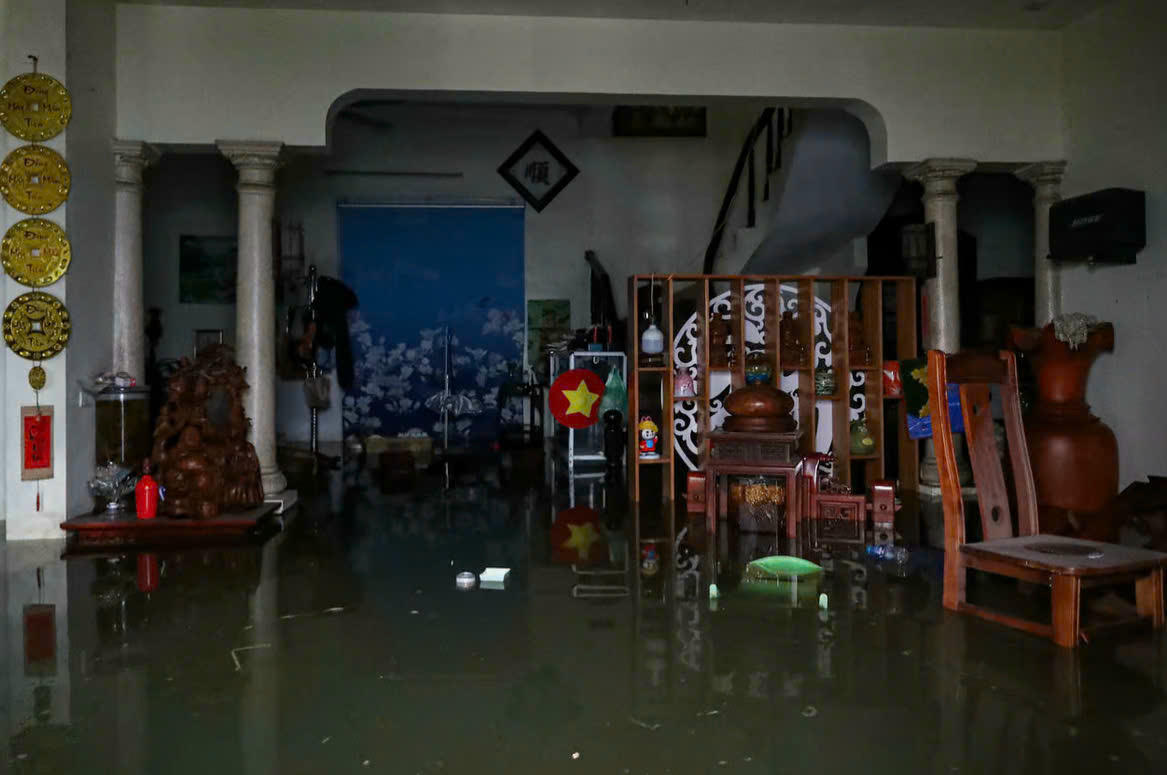 Nhà dân ở Hà Nội ngập sâu do ảnh hưởng của bão số 10. Ảnh Lê Khánh