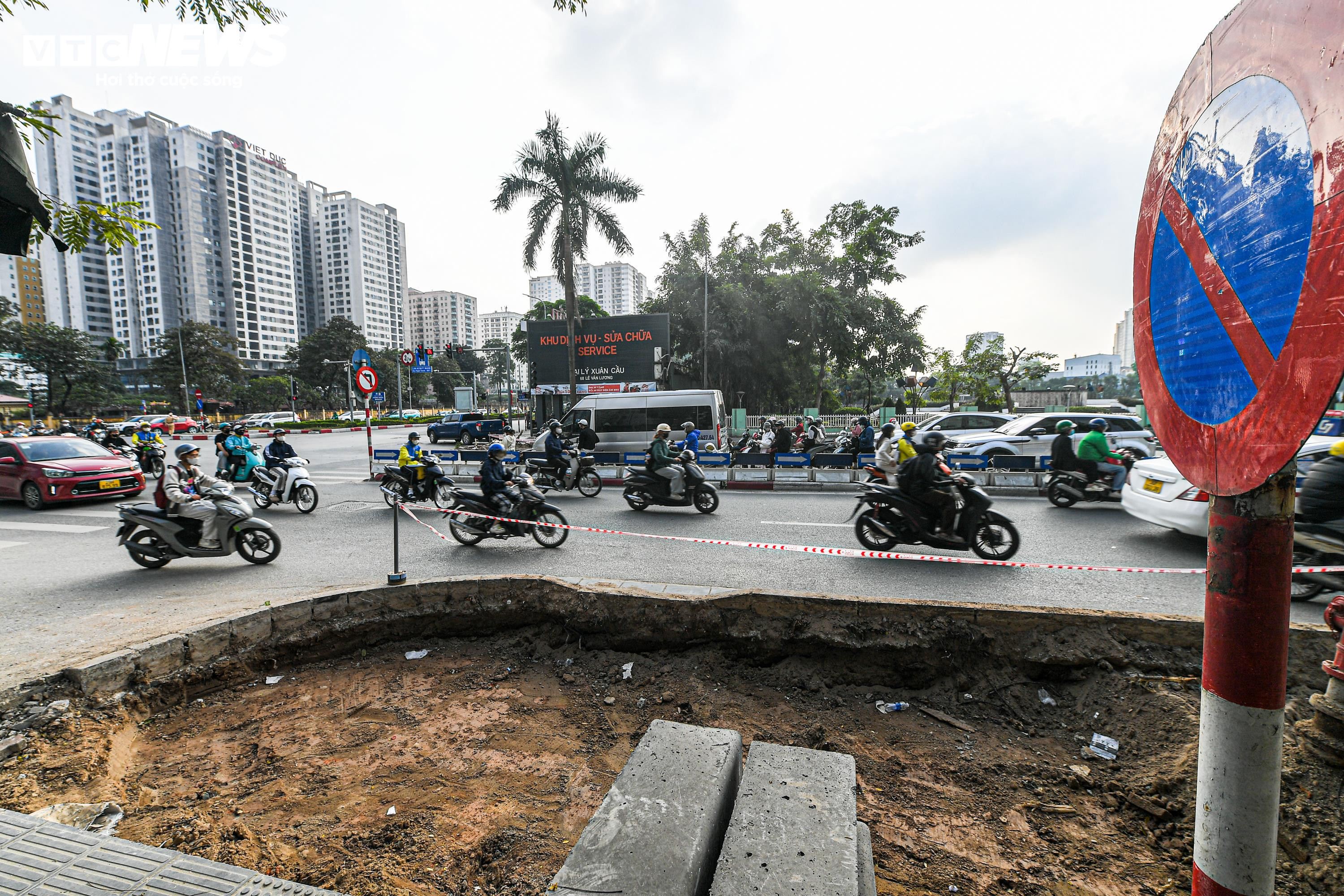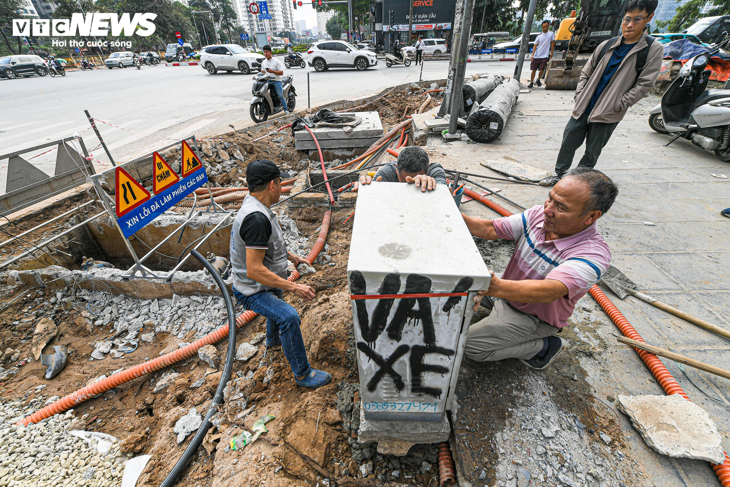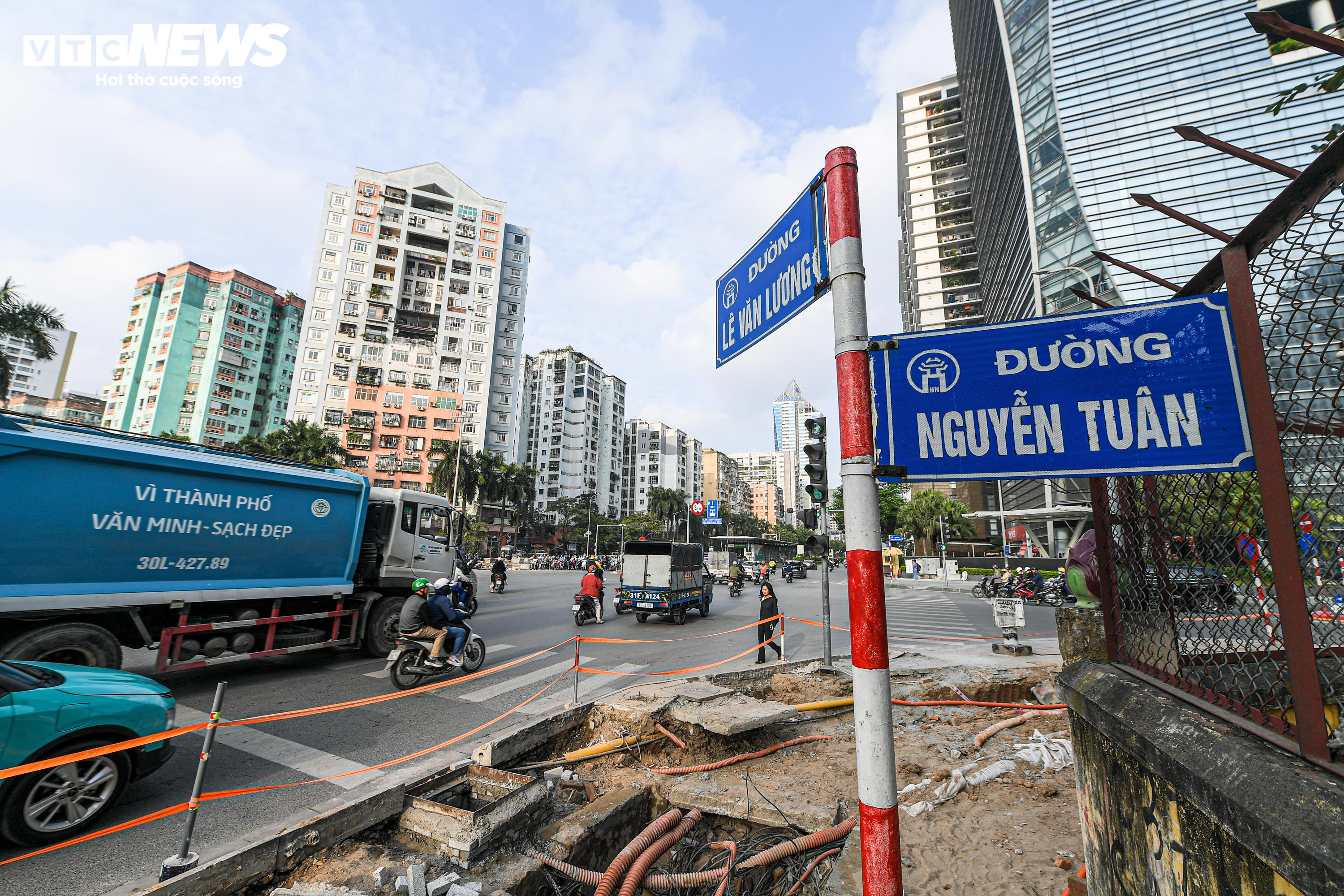 Nhằm giảm áp lực giao thông tại khu vực, các đơn vị chức năng đang triển khai cải tạo nút giao bằng việc mở rộng mặt đường, thu hẹp một phần vỉa hè trên các tuyến Lê Văn Lương, Nguyễn Tuân và Hoàng Minh Giám.