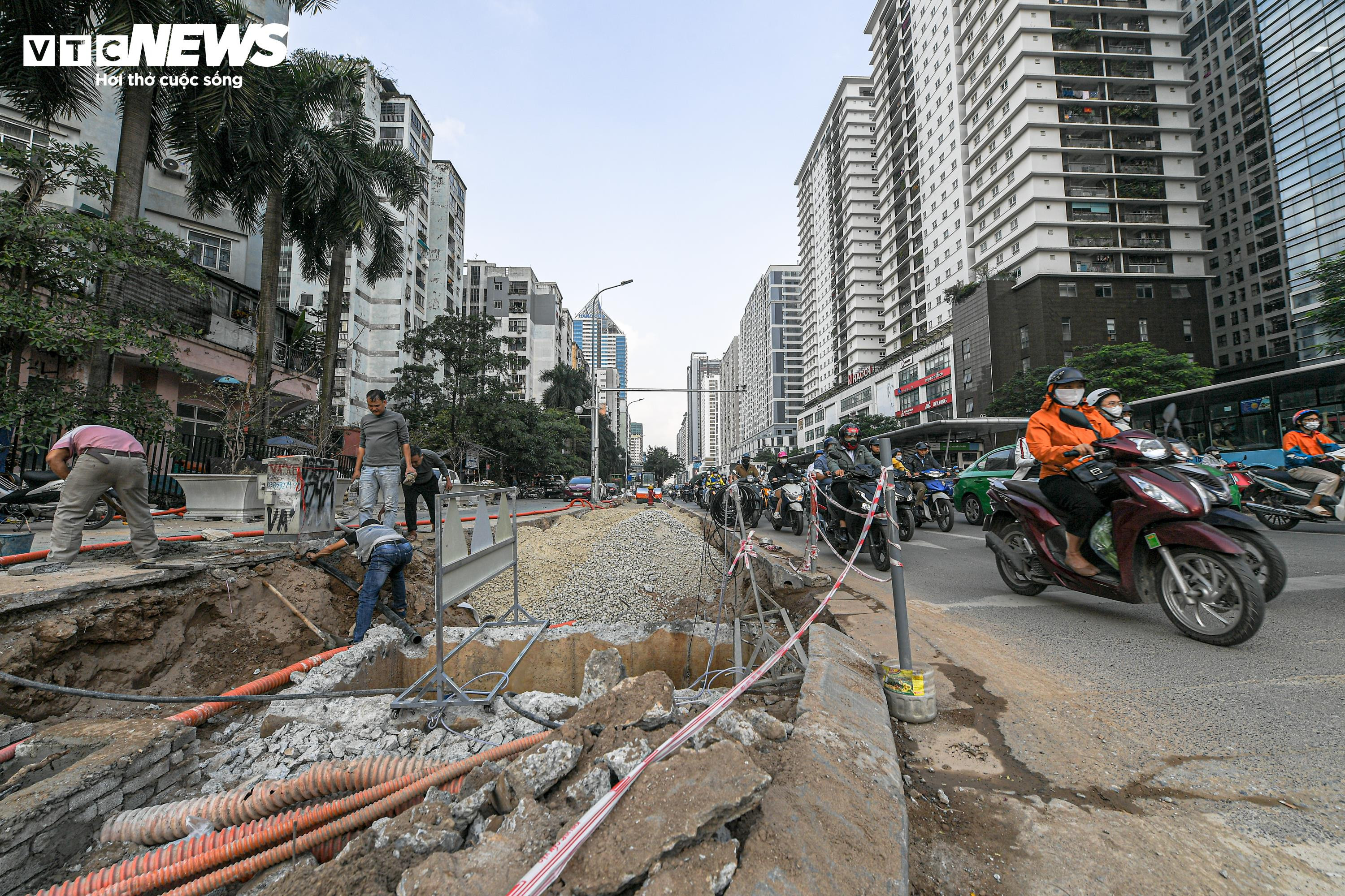 Cùng với đó, nhiều hạng mục hạ tầng kỹ thuật nằm trong phạm vi mở rộng mặt đường như cây xanh, hệ thống chiếu sáng và thoát nước cũng được di dời, điều chỉnh cho phù hợp với phương án thi công.