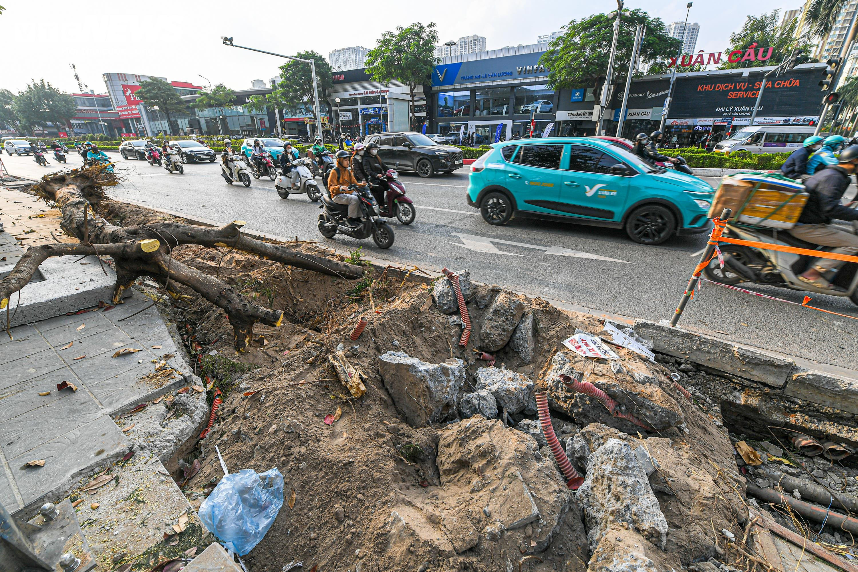 Việc di dời hàng cây được thực hiện song song với điều chỉnh hệ thống đèn chiếu sáng và hạ tầng thoát nước.