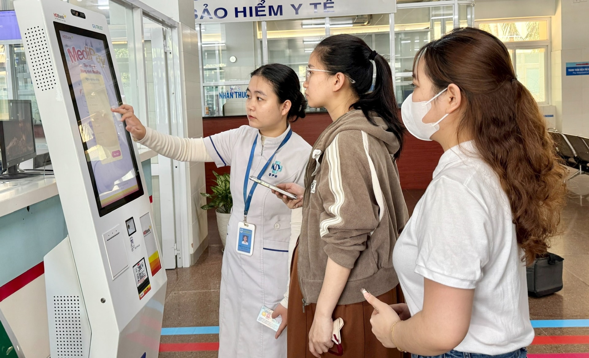 Ki-ốt tiếp nhận khám, chữa bệnh tự động phục vụ người dân khi đến đăng ký khám tại Trạm Y tế xã (Ảnh: PT)