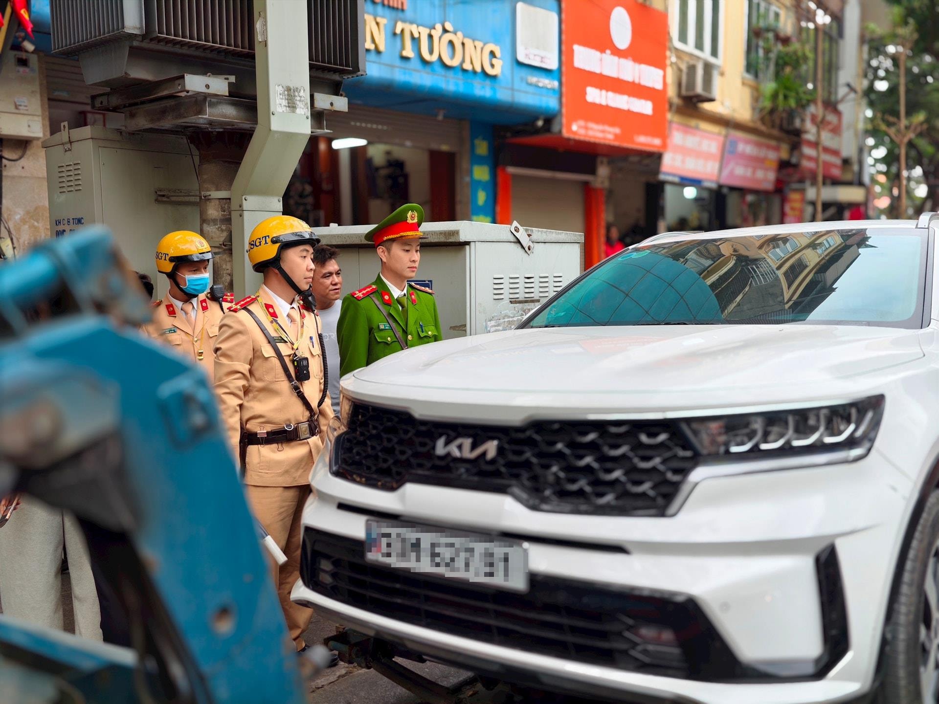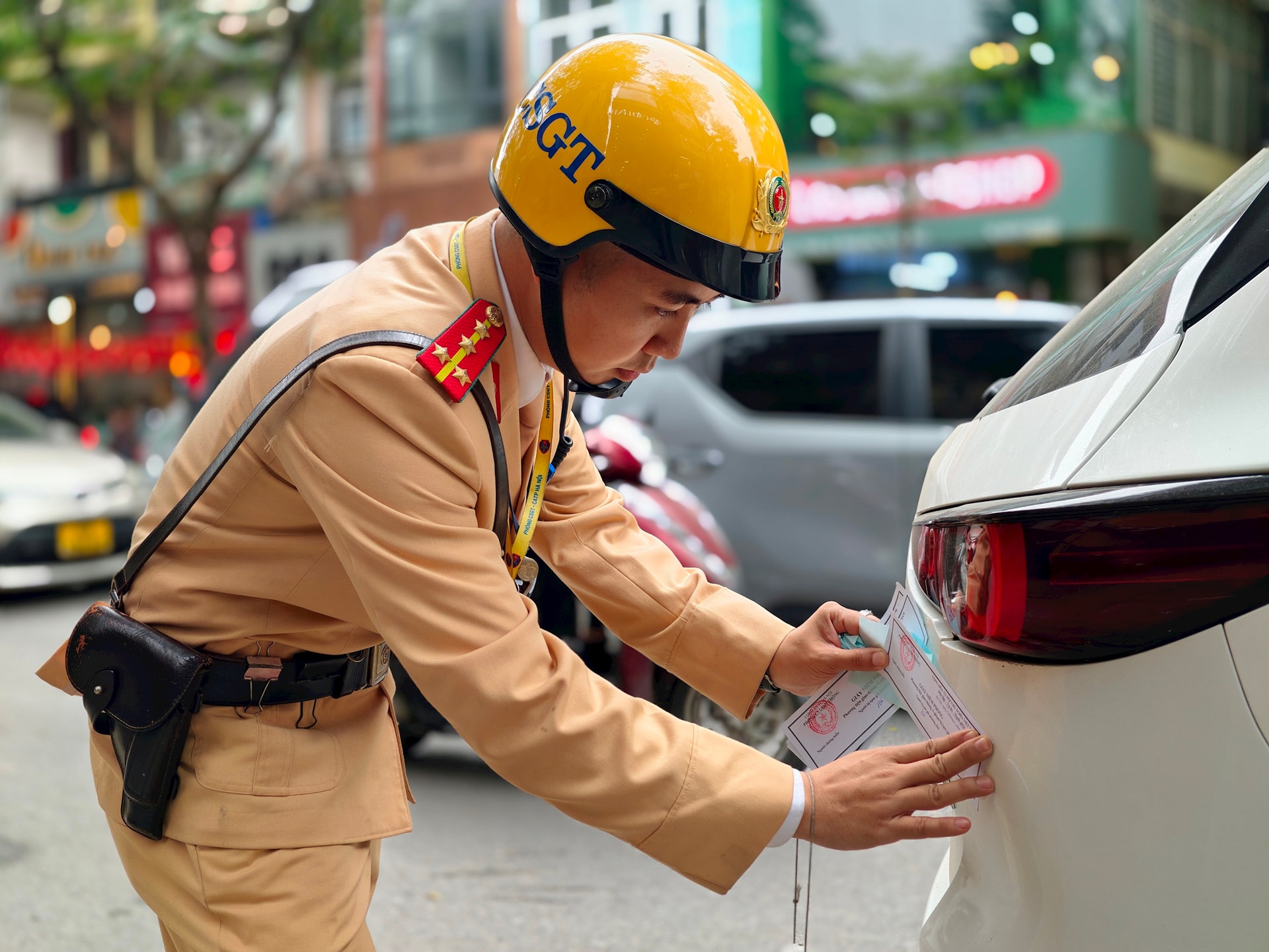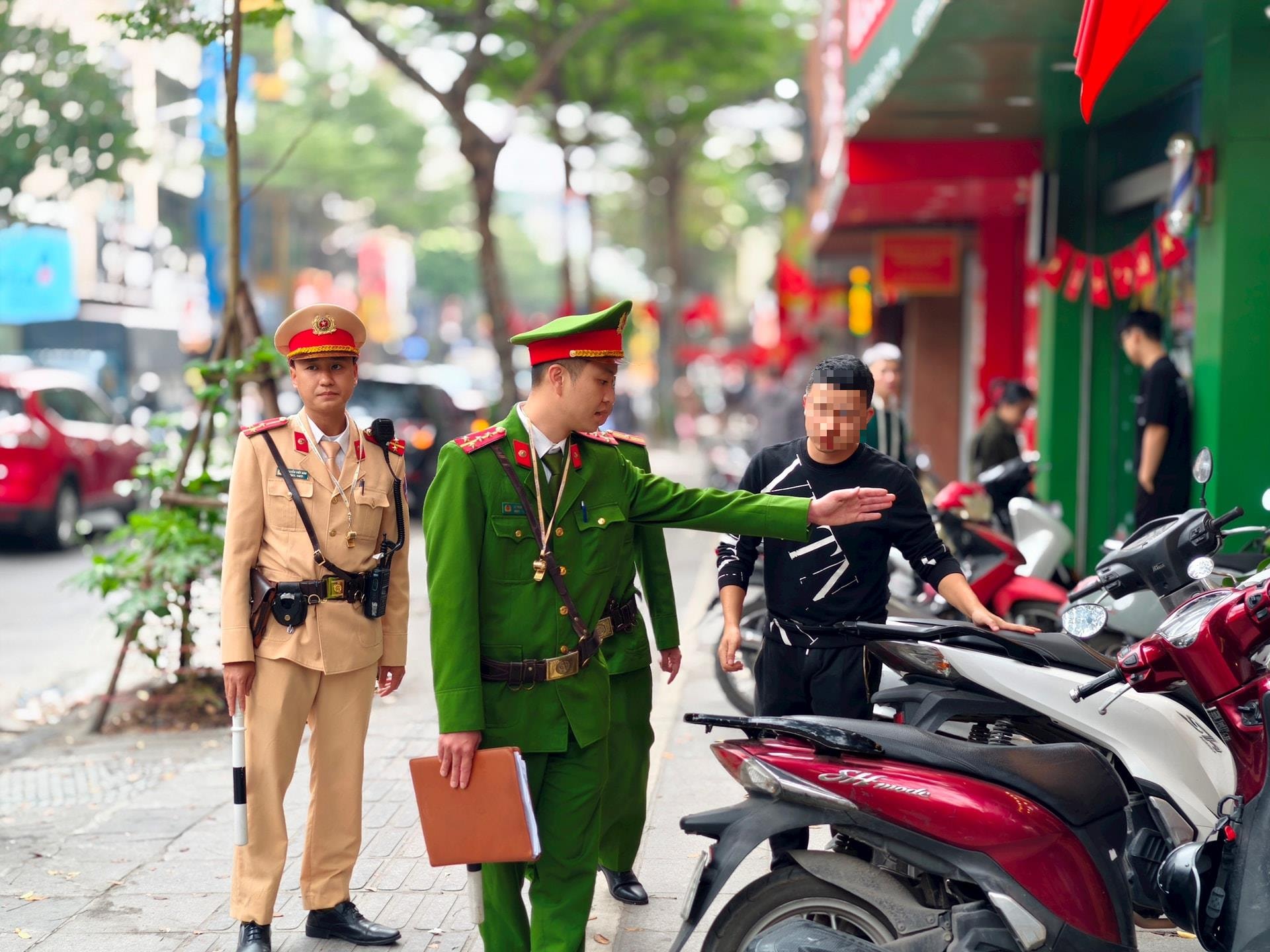 Ghi nhận thực tế, lực lượng cảnh sát giao thông tập trung xử lý các phương tiện dừng đỗ sai quy định và các vi phạm tiềm ẩn nguy cơ gây ùn tắc giao thông. Trong khi đó, cảnh sát quản lý hành chính về trật tự xã hội phối hợp với Công an phường Văn Miếu - Quốc Tử Giám chủ yếu xử lý các hành vi lấn chiếm vỉa hè, lòng đường để kinh doanh, bày bán hàng hóa, đặt biển quảng cáo sai quy định.