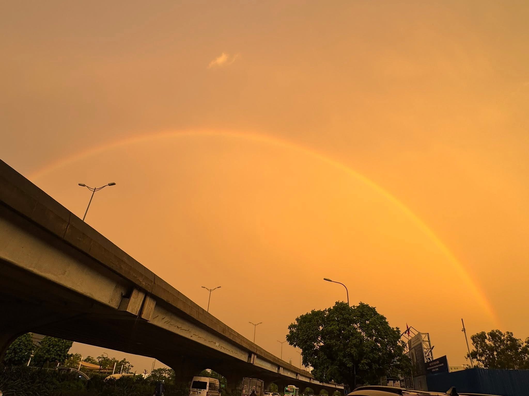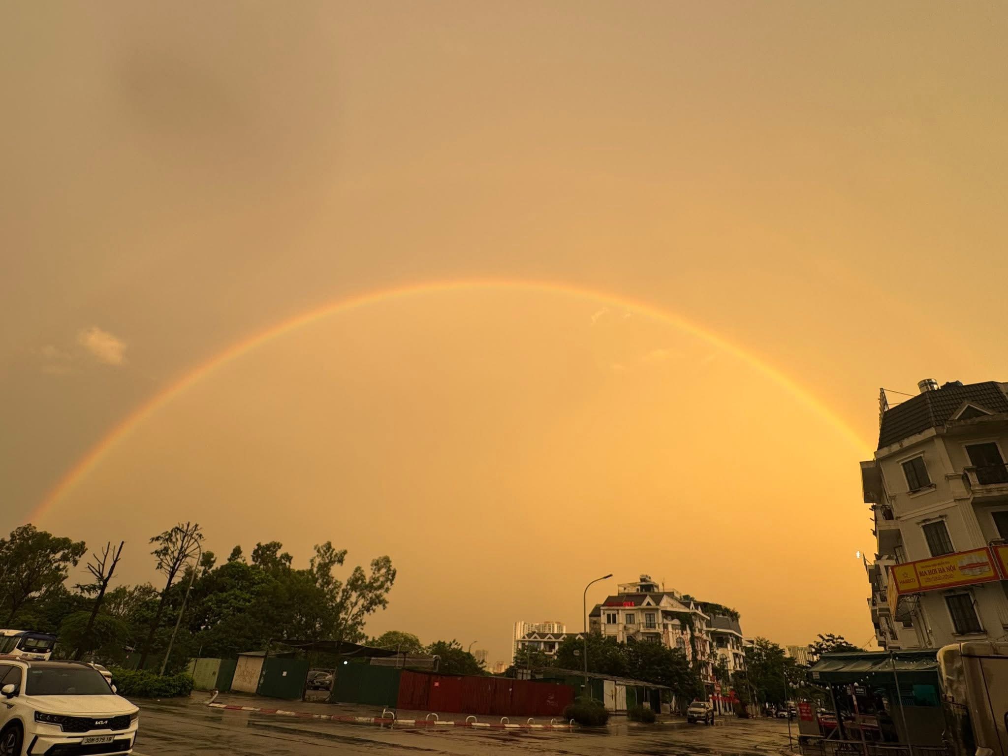 Cụ thể, hình ảnh tại Hà Nội là cầu vồng đơn, xuất hiện khi ánh sáng mặt trời chiếu qua các hạt nước nhỏ trong không khí sau cơn mưa. Ánh sáng khi đi vào giọt nước bị khúc xạ rồi phân tán thành các màu khác nhau. Hiện tượng lạ này đã khiến nhiều người dân ở Hà Nội ngỡ ngàng.