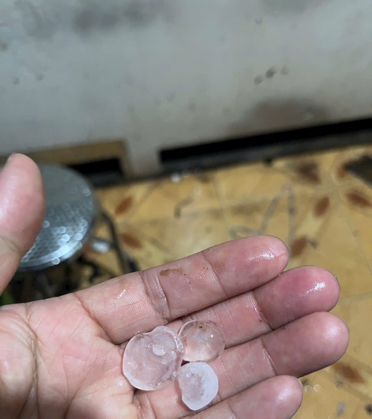 Theo hình ảnh mà người dân chia sẻ, mưa đá có kích thước to bằng hoặc gần bằng đầu ngón tay, rơi nhanh, mạnh, kéo dài vài phút rồi ngừng.