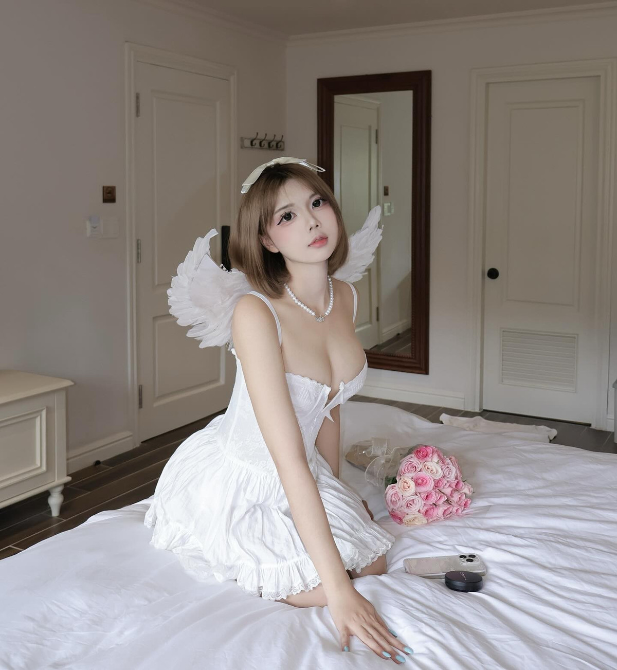 Mái tóc bob ngắn trẻ trung, kết hợp cùng kẹp tóc hình bươm bướm càng khiến Hà Phương Boo đáng yêu, quyến rũ.
