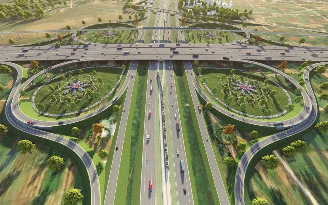 Ảnh phối cảnh một nút giao của Vành đai 4 - Vùng thủ đô (Nguồn ảnh: UBND TP. Hà Nội)