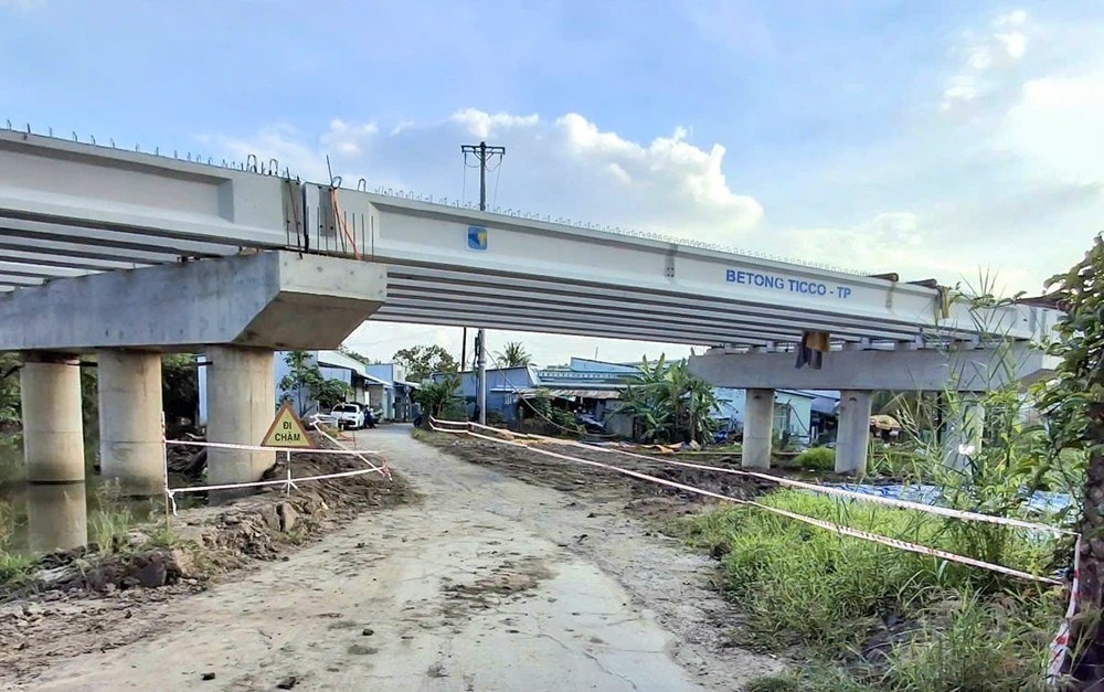 Một cầu trên tuyến ĐT 918 giai đoạn 2 đã thi công cơ bản, phấn đấu hoàn thành tuyến đường trong năm nay. (Ảnh: Báo Cần Thơ).