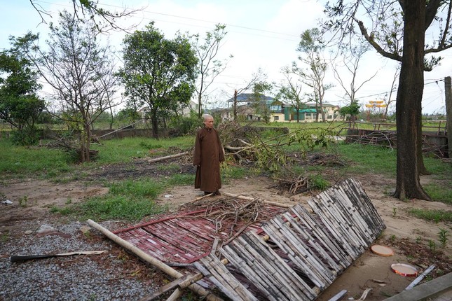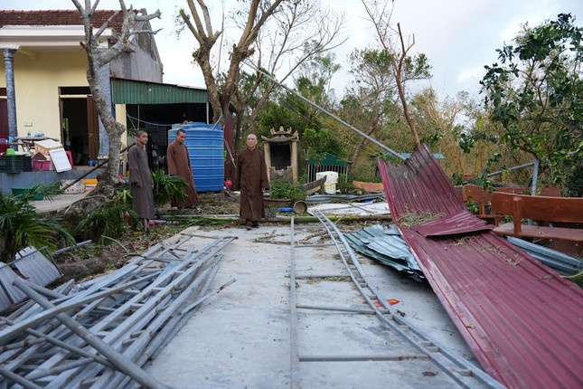 Cơn bão số 10 đi qua, để lại sau lưng nó là cảnh tượng tan hoang: mái chùa tốc ngói, gạch đá ngổn ngang; những pho tượng Phật nghiêng ngả, nứt vỡ; những quyển kinh, tập sách bị ướt sũng; hoa viên vốn thanh tịnh nay chỉ còn lại bùn đất và cành cây gãy đổ. Chùa vốn là mái nhà tâm linh, là nơi nương tựa tinh thần cho bà con Phật tử, nay cũng chung cảnh ngộ “mái xiêu, vách nát” cùng dân lành.