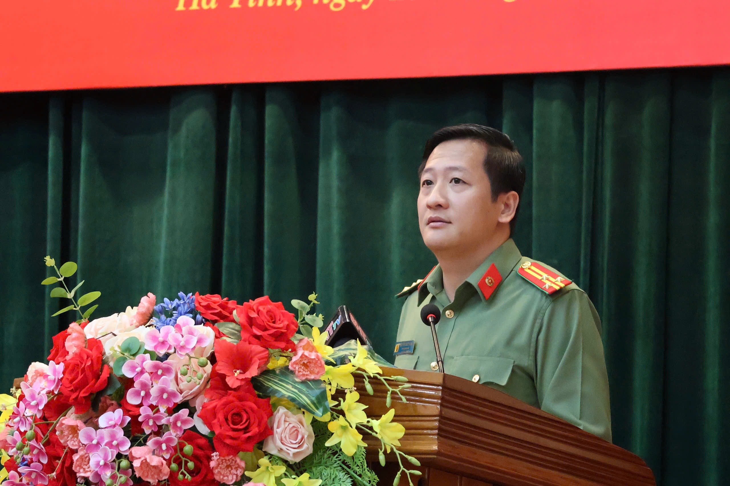 Phó Giám đốc Công an tỉnh, Thượng tá Nguyễn Quốc Hùng phát biểu tại hội nghị
