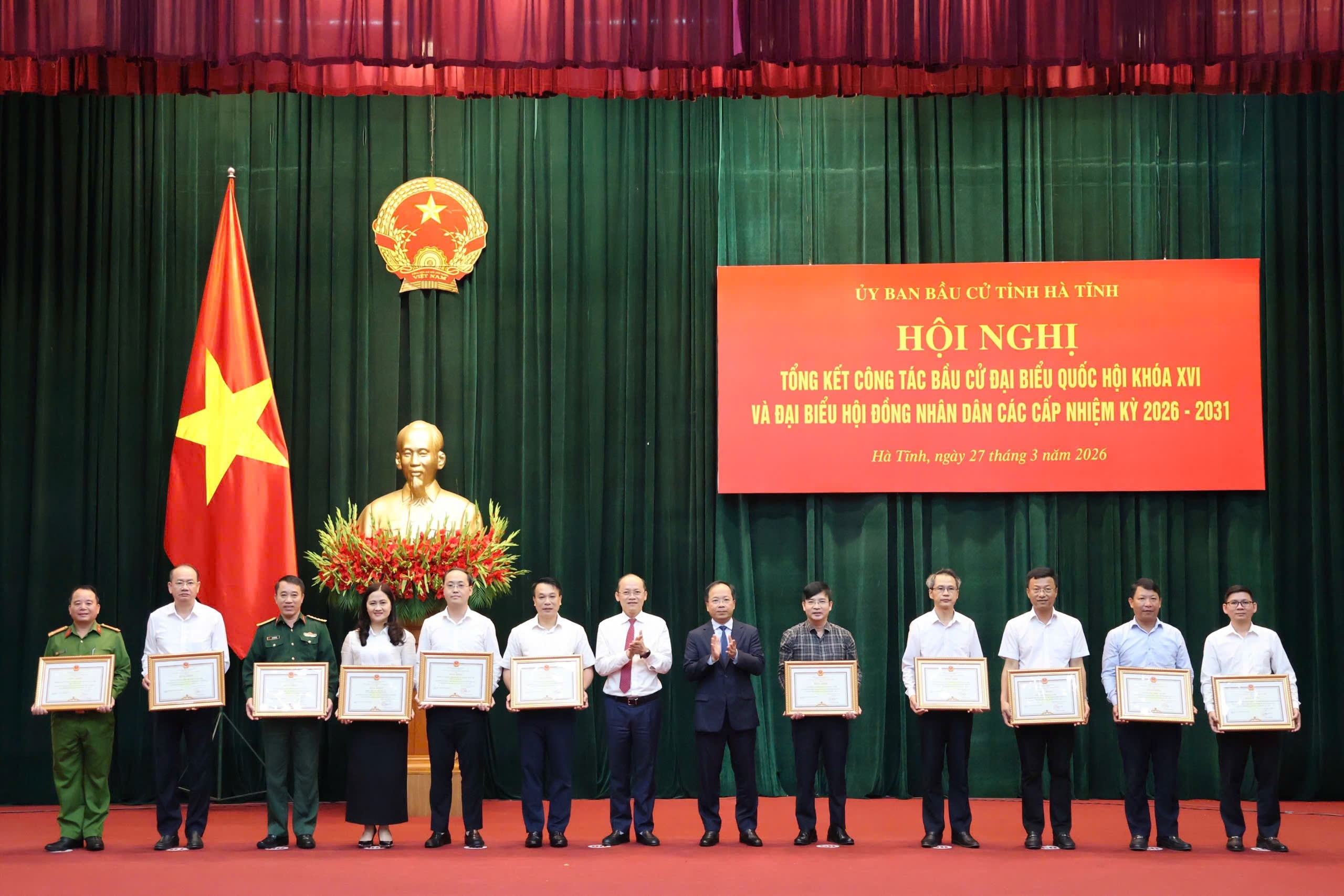 Dịp này, 2 tập thể, 2 cá nhân được đề nghị Thủ tướng Chính phủ tặng Bằng khen; Chủ tịch UBND tỉnh tặng Bằng khen cho 90 tập thể, 97 cá nhân có thành tích xuất sắc trong công tác bầu cử.