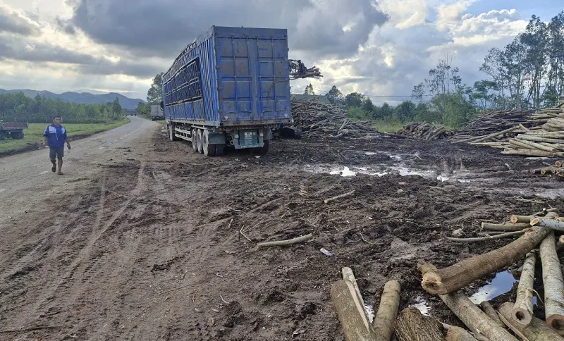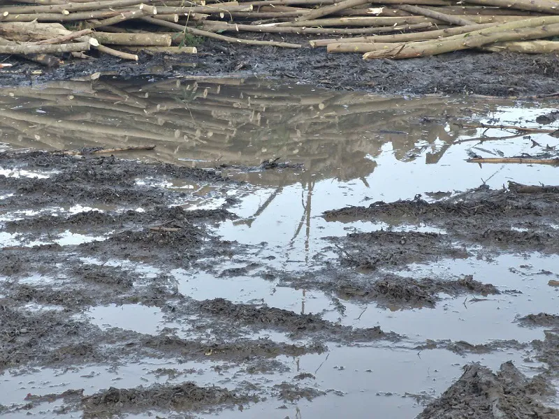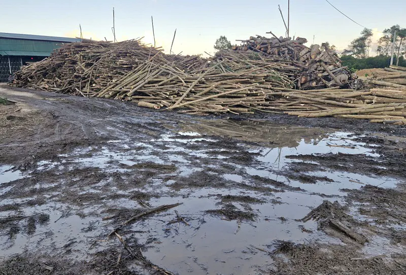 Tuy nhiên, do hạ tầng các cơ sở thu mua gỗ keo tràm đều xây dựng tạm bợ, chủ yếu tận dụng các bãi đất trống ven đường nên đã xảy ra tình trạng gỗ tập kết bừa bãi, lộn xộn, nước vỏ keo tràm đen kịt, bùn đất nhầy nhụa, chảy lênh láng khắp nơi.