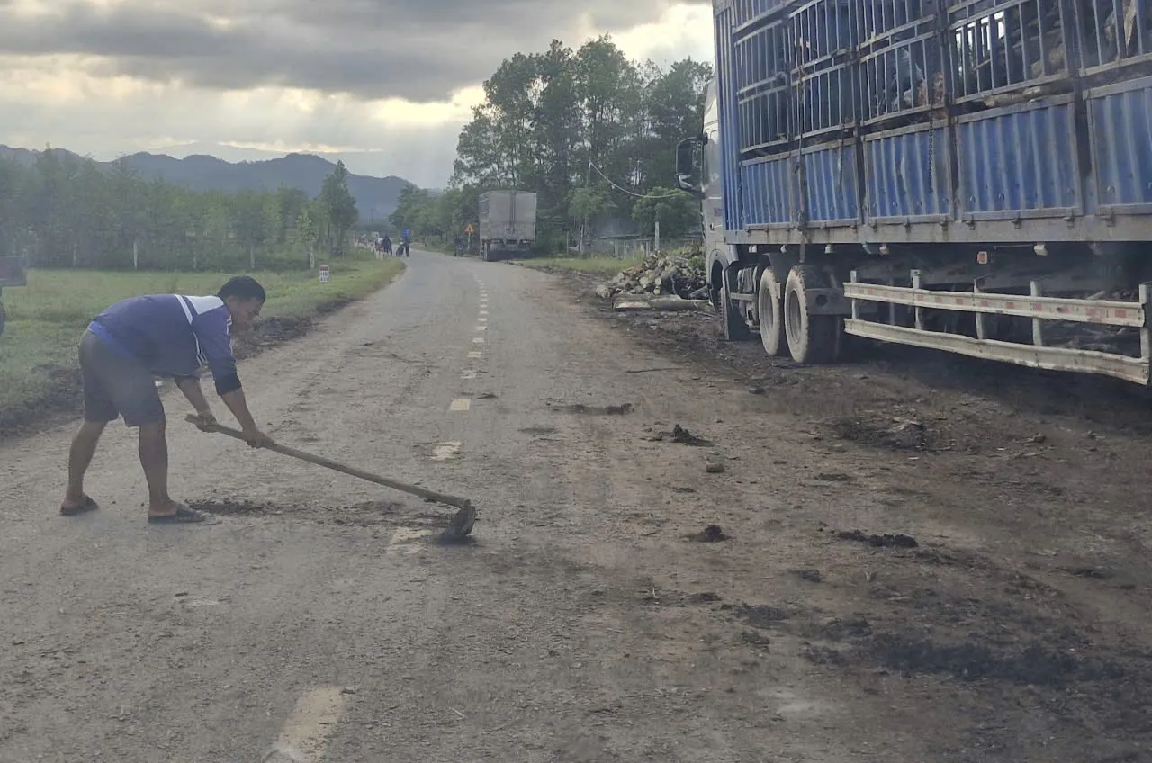 "Bãi đất để tập kết gỗ keo tràm chỉ thuê sử dụng thời gian ngắn, sát Quốc lộ 15 để tiện thu mua. Trong đợt này khối lượng gỗ keo tràm người dân tận thu sau mưa bão rất lớn, mỗi ngày chúng tôi thu mua khoảng trên 30 tấn. Vì bãi chật hẹp, xe tải hoạt động liên tục nên vào những ngày cao điểm bùn đất kéo ra đường, gây mất an toàn giao thông, ô nhiễm bụi bặm. Chúng tôi đang cố gắng khắc phục, nhưng vẫn chưa triệt để" - anh Nguyễn Văn Tú ở xã Hương Đô cho biết.