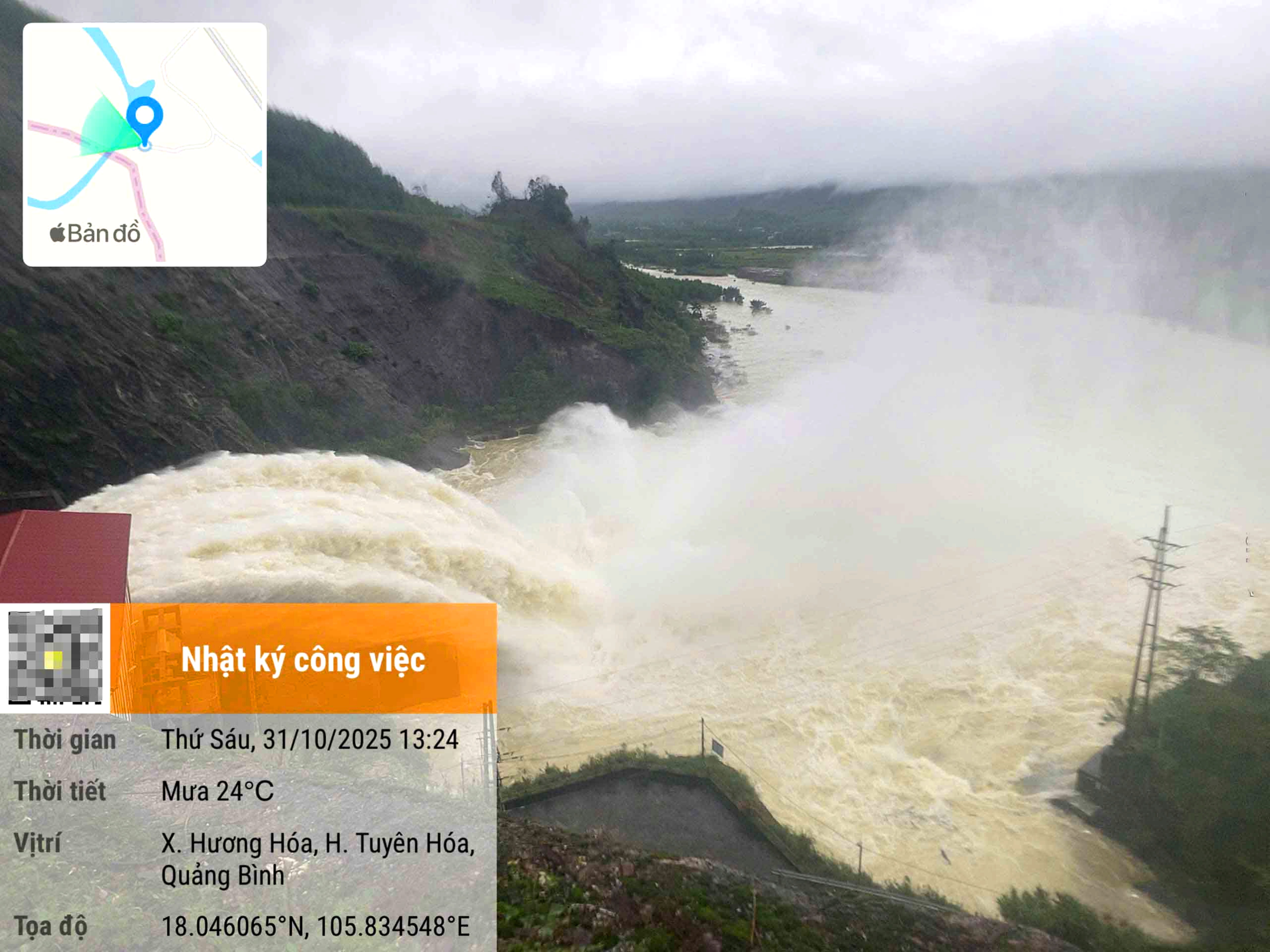 Cụ thể, lúc 16 giờ ngày 31-10, mực nước thượng lưu là 66,63m; mực nước hạ lưu là 24,30m; lưu lượng nước về hồ chứa của Nhà máy Thủy điện Hố Hô là 1.200m3/s; lưu lượng nước qua tràn là 1.221m3/s; lưu lượng nước qua máy là 32m3/s... Các hạng mục công trình vận hành bình thường.