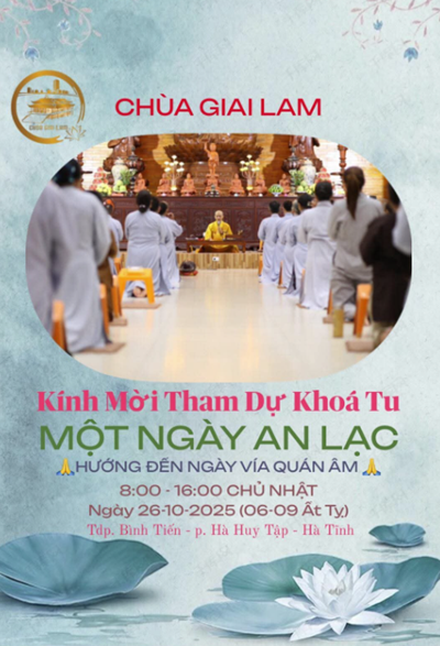 Trong tiết trời thu dịu mát, khi lòng người như lắng lại sau những bộn bề của cuộc sống, chùa Giai Lam (thôn Bình Tiến, phường Hà Huy Tập, tỉnh Hà Tĩnh) sẽ tổ chức khóa tu “Một ngày an lạc” vào ngày 26/10/2025 (ngày 06/09 năm Ất Tỵ). Đây là dịp để quý Phật tử cùng nhau trở về nương tựa Tam bảo, thực tập chính niệm trong từng bước chân, hơi thở và hành động, nuôi dưỡng thân tâm an tịnh giữa đời sống hiện đại.