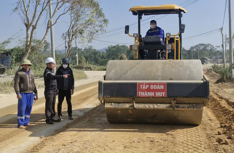 Công ty cổ phần Tập đoàn Thành Huy đang huy động tối đa nhân công, máy móc đẩy nhanh tiến độ xây dựng dự án đoạn từ Quốc lộ 8 đến đường Hồ Chí Minh.